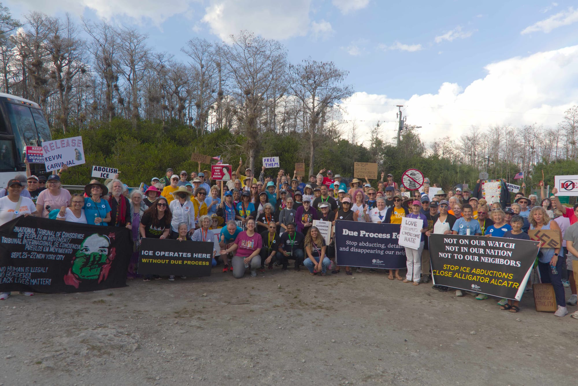 Upwards of 150 people again showed up at 4 PM near mile marker 48 of US 41 in South Florida to pray for all of the people in the South Florida Detention Center, commonly known by its racist nickname, Alligator Alcatraz on March 1, 2026.