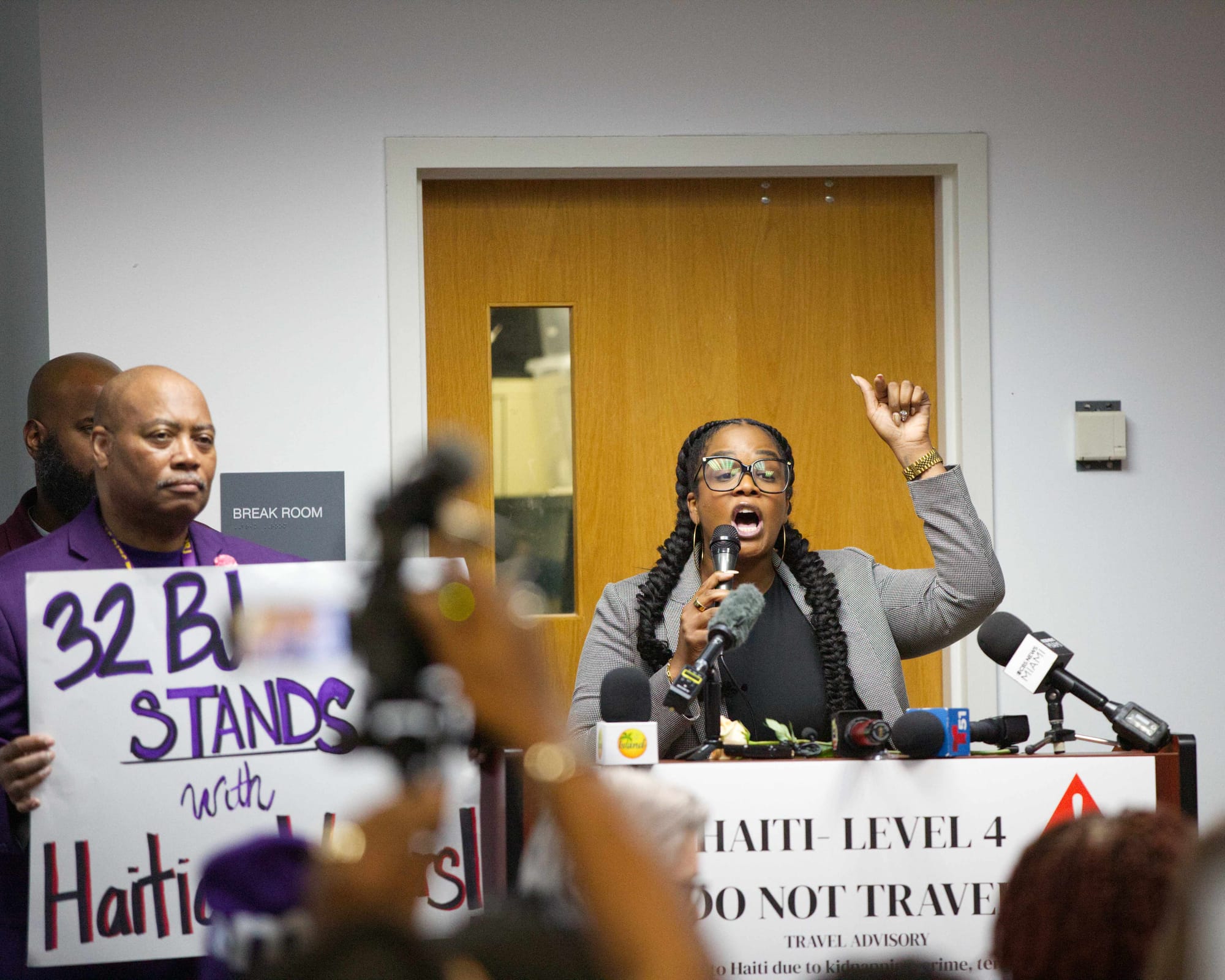 "How is it possible for the Department of Homeland Security under Donald Trump and Kristi Noem for them to suggest that conditions have improved enough for TPS to be revoked and for Haitians to return to their country?" the congresswoman rhetorically asked the crowd gathered for the press conference.