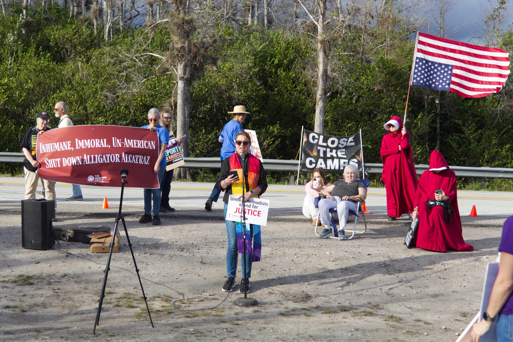 While special guest speaks such as Ramírez Boscán, Pagitt and McLaren, were the highlights of the 30th prayer vigil across from the "horribly named Alligator Alcatraz," the Southwest District of Florida of the United Methodist Church, with a little assist from Rev. Tony Fisher of the Unitarian Universalist Congregation of Greater Naples, made the congregation that filled the space feel at home.
