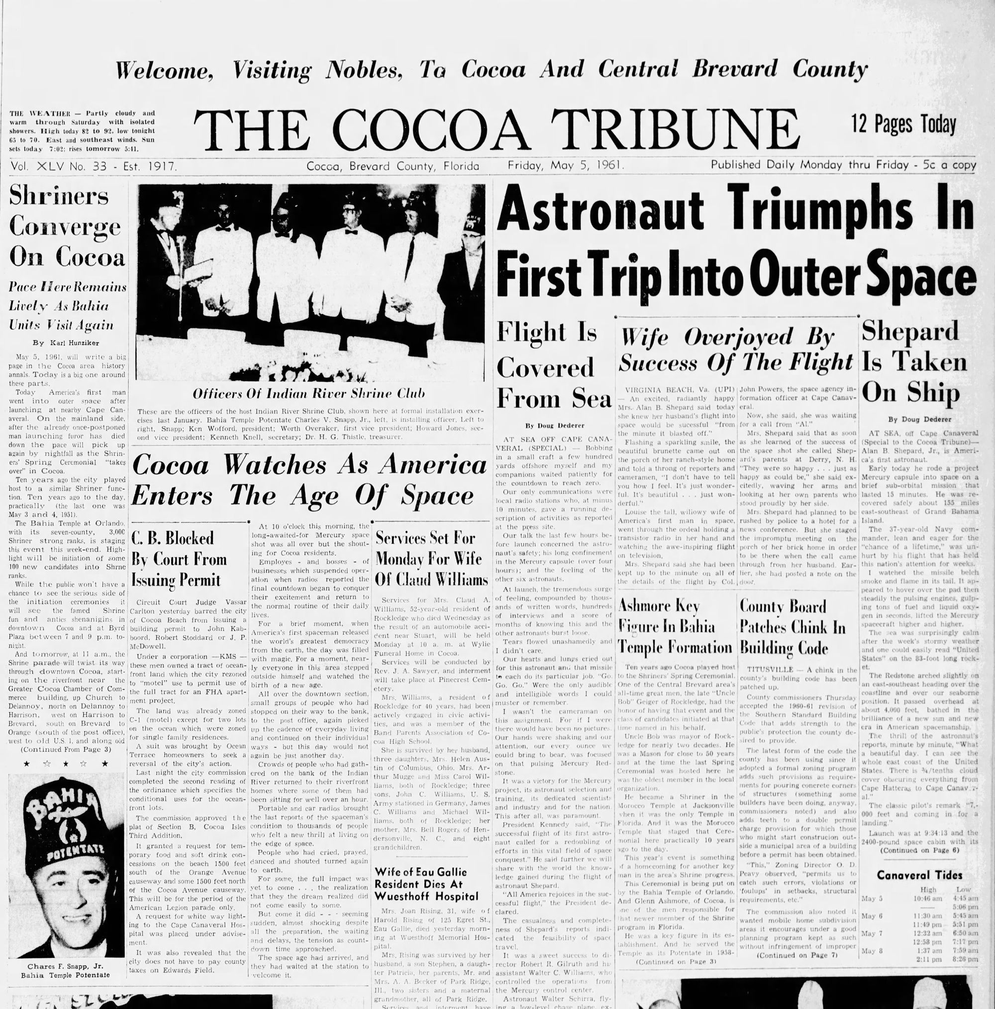 The Evening Tribune. “Cocoa Watches as America Enters the Age of Space.” May 5, 1961.