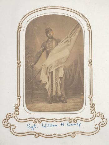 But this was only the beginning of the Massachusetts 54th's history. It ignores the fact that the Fort was abandoned a few weeks later and that the heroism of William Harvey Carney that night when he kept the American flag from touching the ground, even in retreat, became one of the best-known, most iconic retellings in the entire war. According to historian Douglas R. Egerton, “By the start of the twentieth century, the phrase ‘the old flag never touched the ground’ became one of the most popular across the North, and Carney’s words, one New Englander remarked, were 'known by every schoolboy in the land.'” William McKinley awarded Carney the Congressional Medal of Honor in 1900, none of which is accurately depicted in the movie.[2]