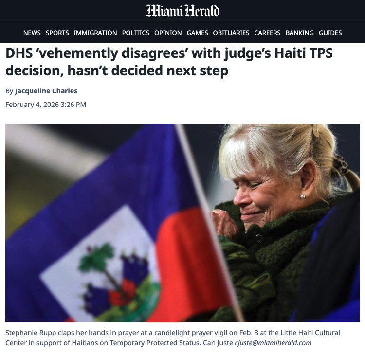 As Tom Latchem at the Daily Beast revels in the pleasure at Noem's suffering, Sergio Bustos with WLRN (the first piece in this section), who is in the county that will be most impacted by TPS ending for Haitians ends on a more measured note: