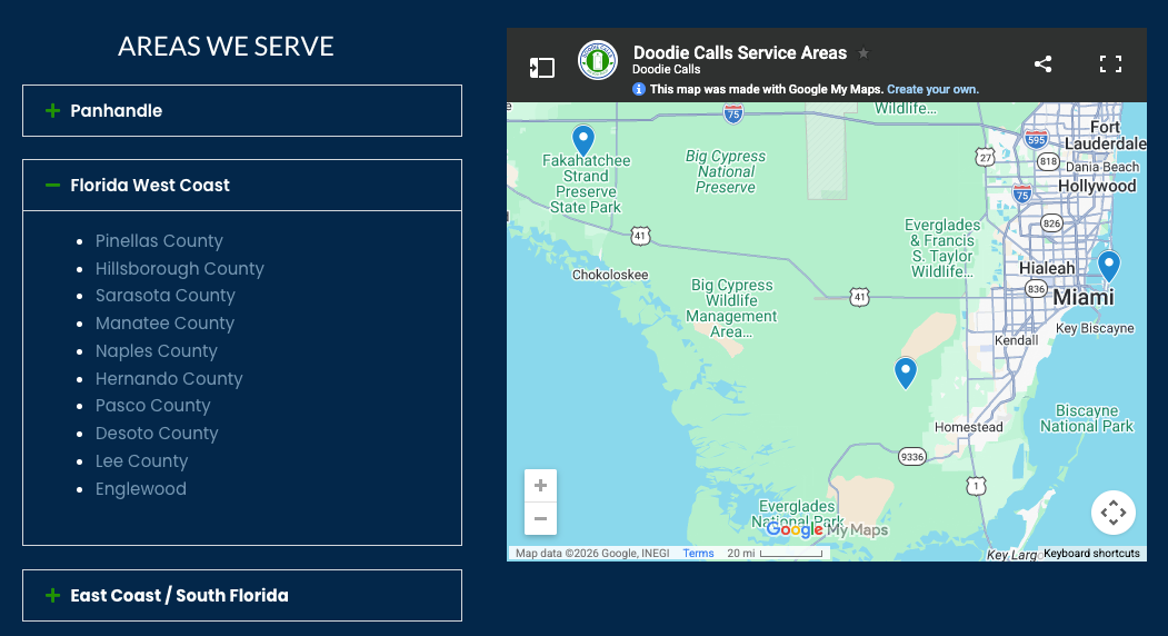 Interestingly, Doodie Calls website doesn't even list Collier County, where the so-called Alligator Alcatraz sits, as a county it serves. On the other hand, it does list "Naples County," and Naples is the county seat of Collier County.