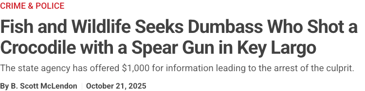"Dumbass"speared a crocodile. This is dumb for many reasons, not to mention it being a state and Federal felony.