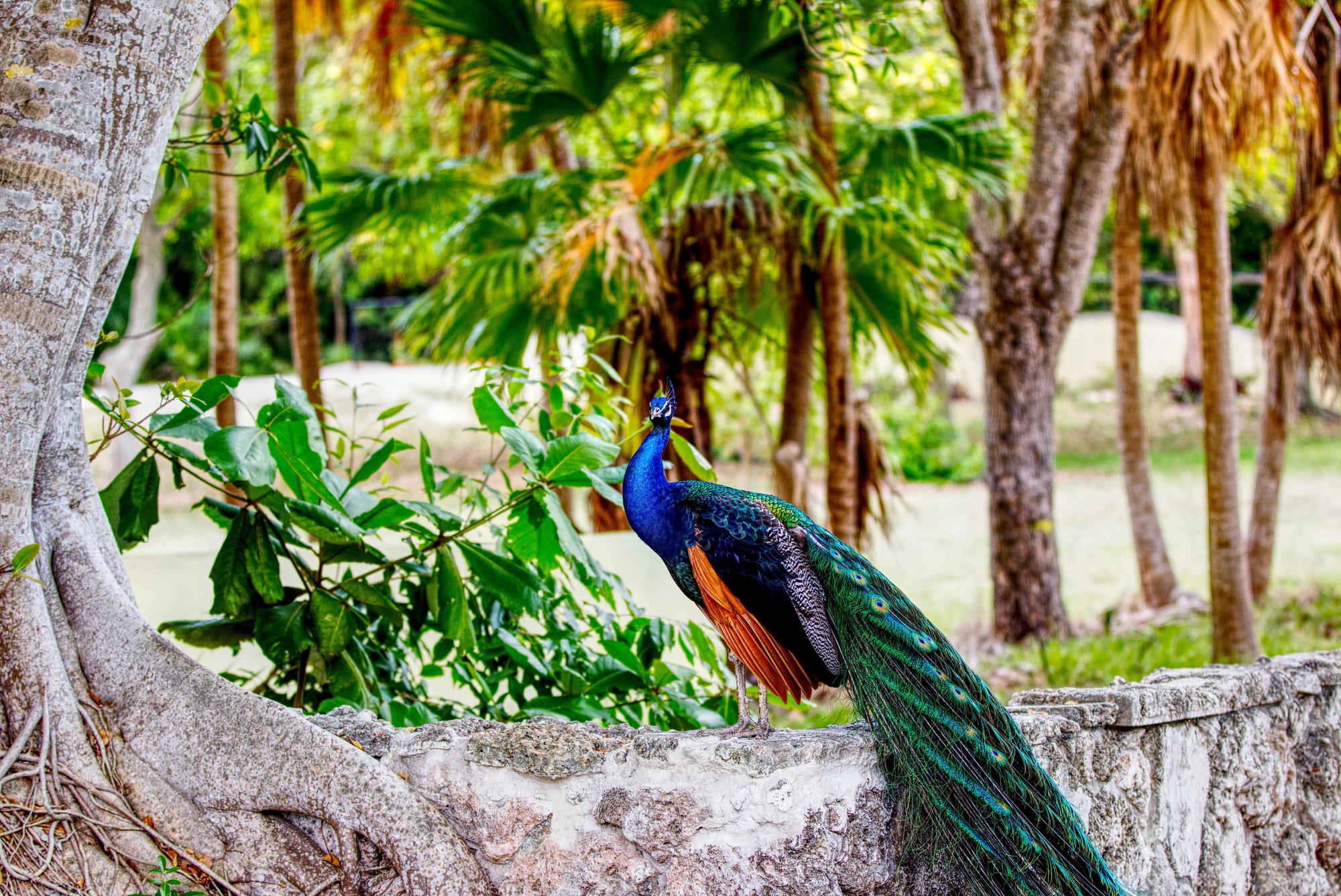 My mom and I visited the abandoned zoo in Crandon Park on Key Biscayne last week, where I saw the crocodiles. Though we saw no crocodiles, much to my mother's disappointment, we did see plenty of peacocks.