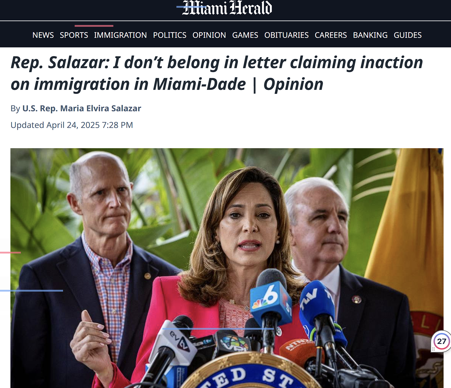It is worth noting that when a rich guy called the Representative out last week, she took to the Miami Herald to respond. She is right to say she's done more than most Republican members in Congress. But if you read this piece by her, you'll notice that she spends almost the entire piece talking about things that happened in the previous two Congresses, not the current one. And while she did help one immigrant detained by ICE in Florida a month ago, and that's truly commendable, Operation Tidal Wave showed this week rounded up hundreds of other immigrants needed her help too. She doesn't mention that.