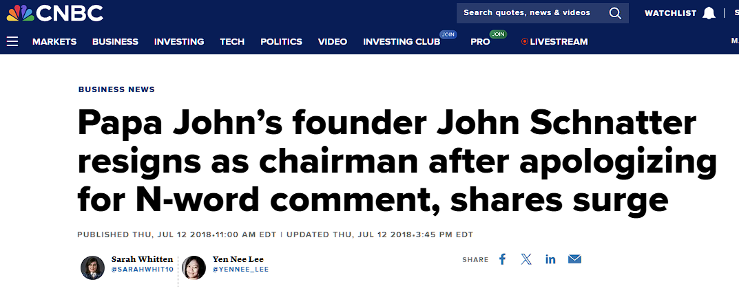 I also remember John Schnatter being fired for being racist during a training trying to help him not tank the company's stock by being racist. Never mind the multiple allegations of sexual misconduct. So, Schnatter, who still has enough pull to get on a podcast and is worth several million dollars (admittedly, not super rich), has been erased. Got it.