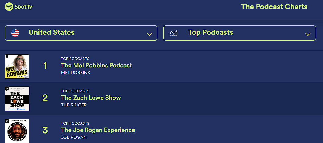 The Shot goes on to list Joe Rogan as a canceled celebrity. Poor Joe, he's no longer the top Podcast at Spotify, which pays him millions on top of subscription fees. Being canceled has him all the way down at number three at time of writing this.