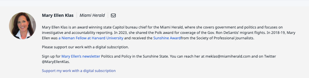 Perhaps it wasn't out of fear the Herald declined to run a story written by a person still listed as their "award winning state Capitol bureau chief," maybe it was something else (though I'm not seeing any articles in the Herald by her since 2023). Maybe they don't like her. I don't know. But it's weird and Florida is weird and Florida gonna Florida.