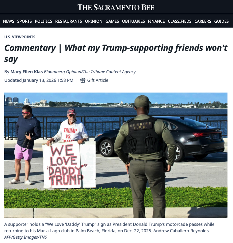In my experience, most Republican voters supported Trump and his promises in 2024 for defensible reasons. Many also now believe his behavior in office is wrong. So why isn’t there more public pushback? On a recent trip to Miami, the answer I got was a sobering one: We’re afraid.