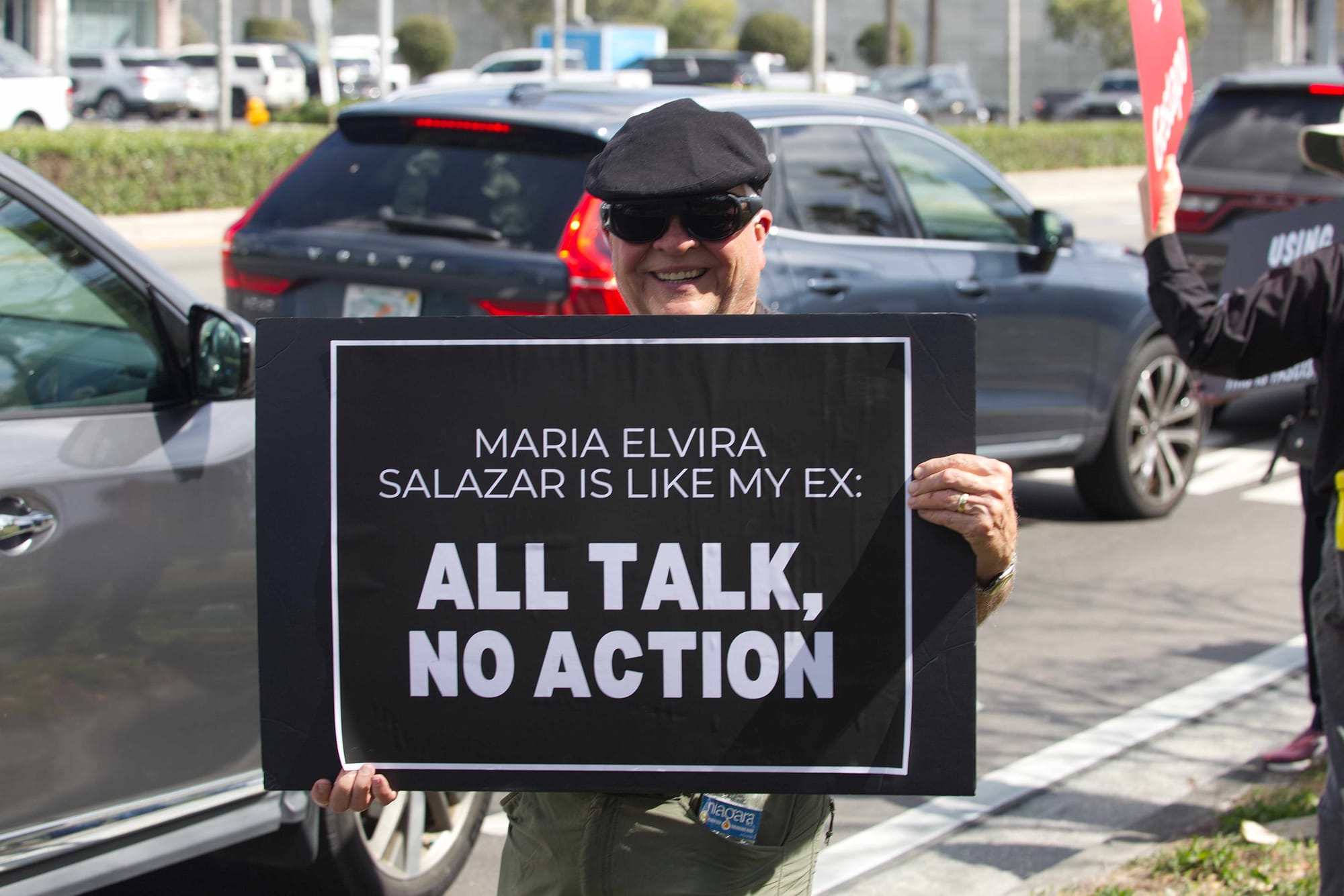 About 20 protesters defied the Miami heat to demand Maria Salazar host a town hall meeting.