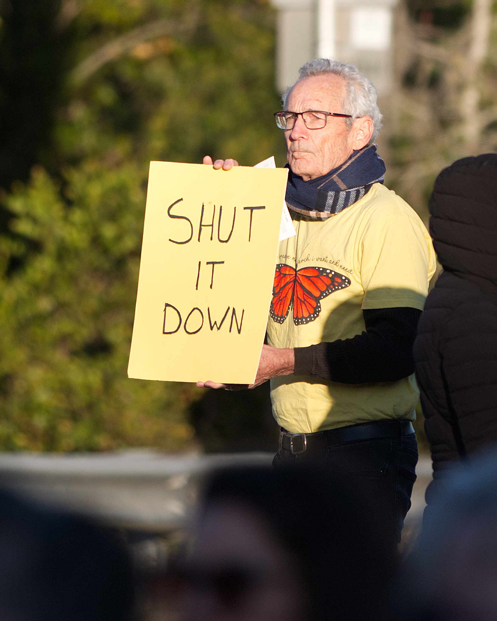 Close to 1 PM about 20 protesters were at this event. Lots of horn honking.