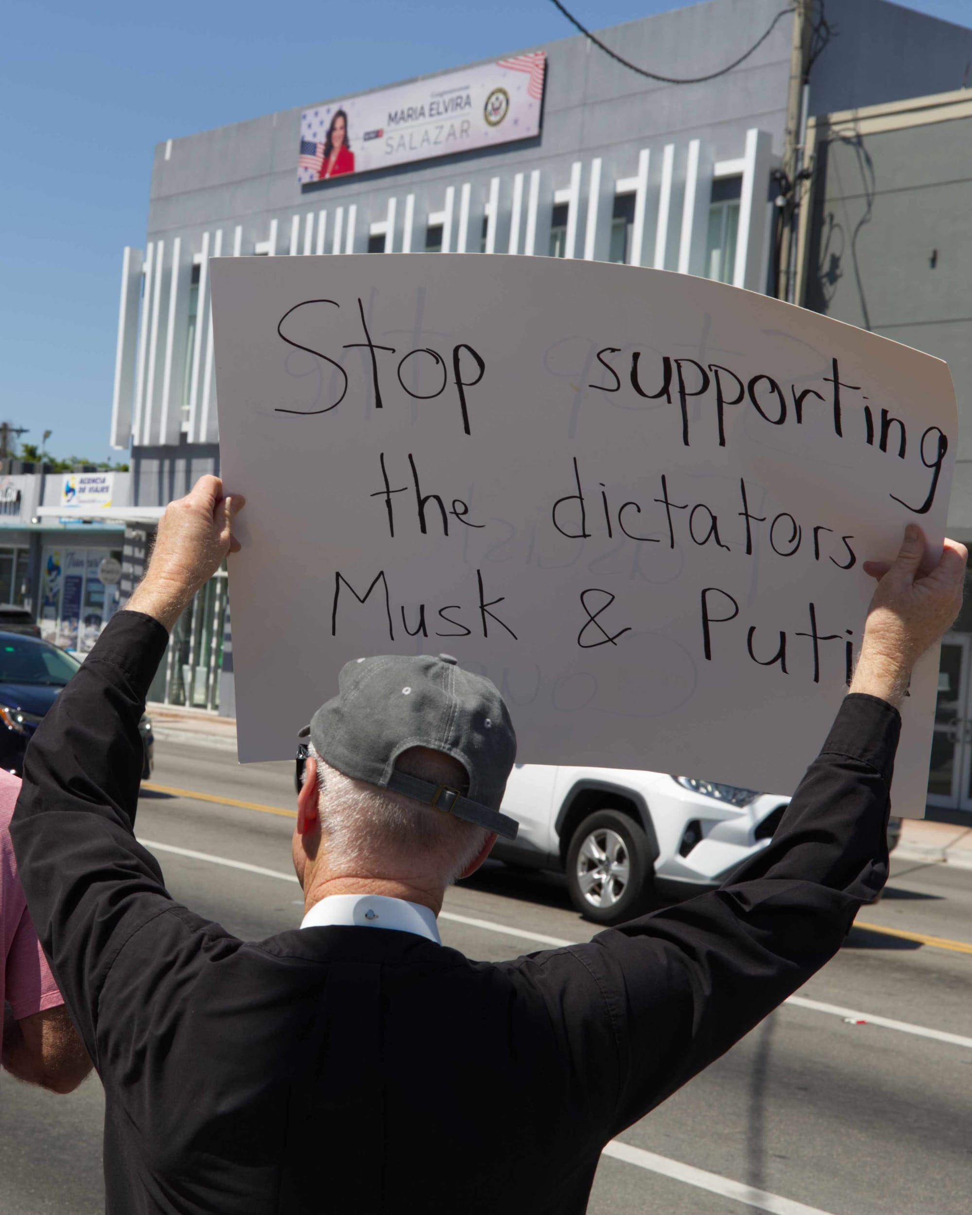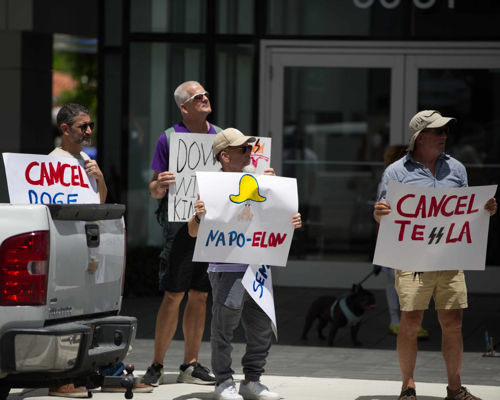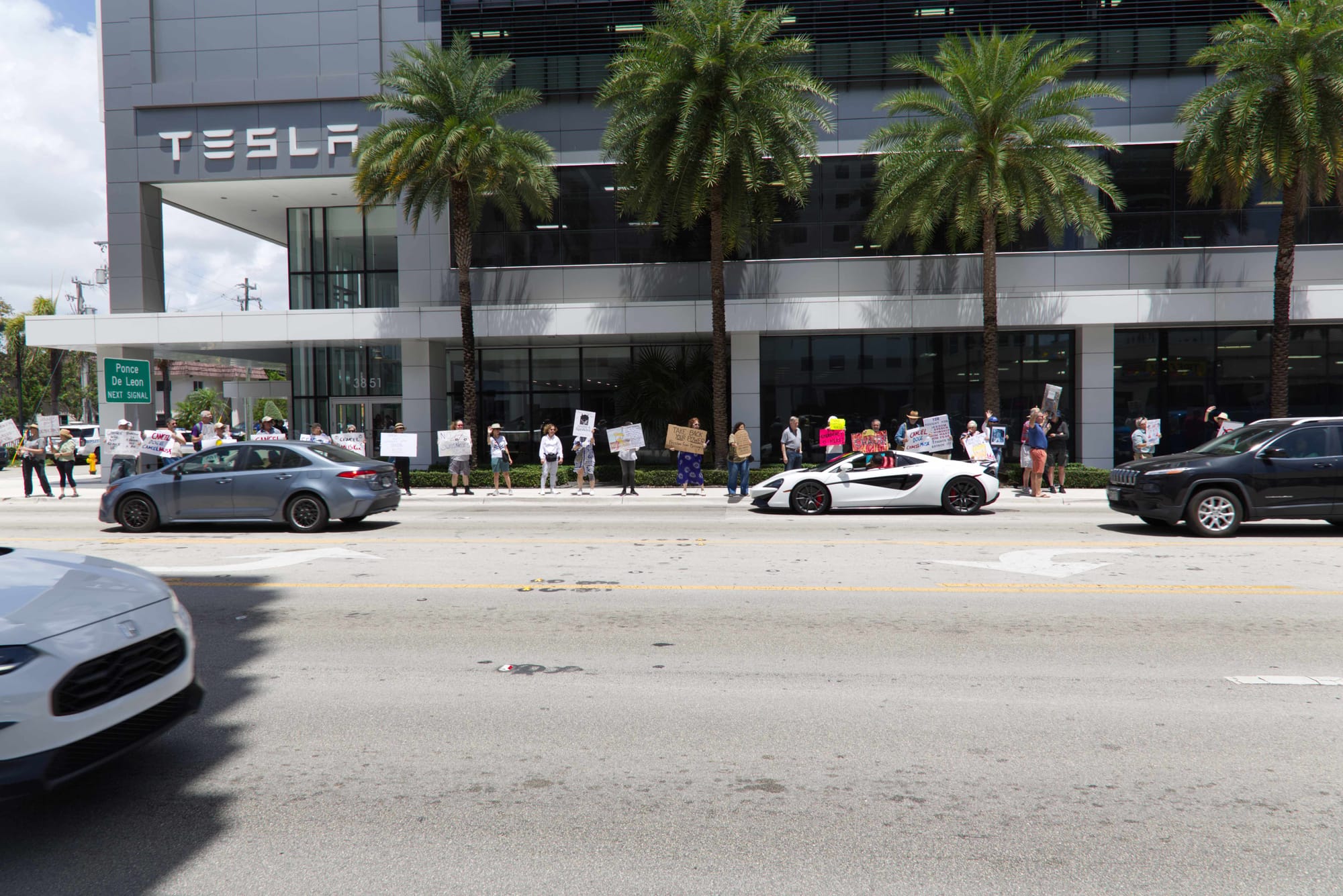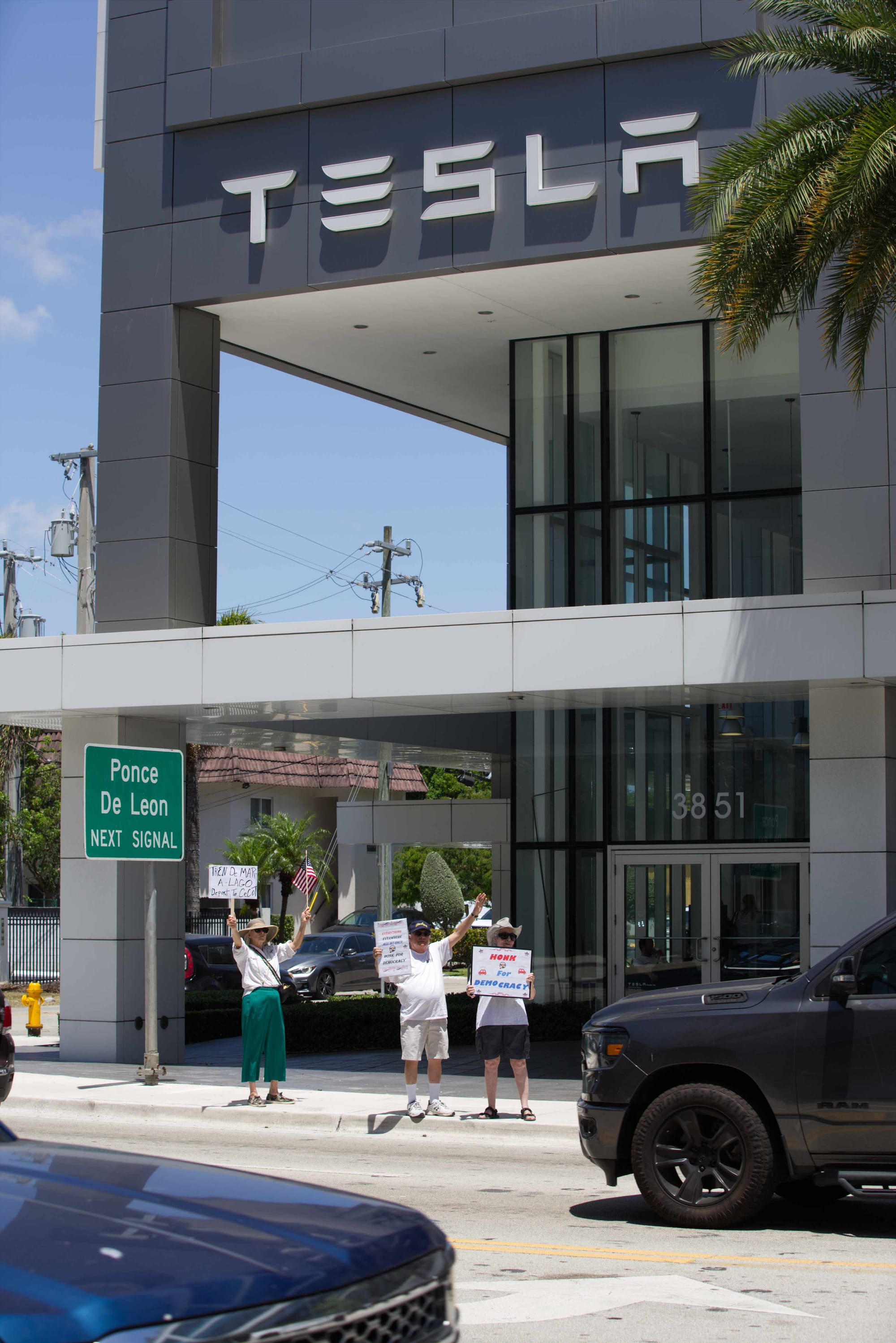 Protestors in Miami, Florida at the Tesla showroom on Bird Road on March 29, 2025.