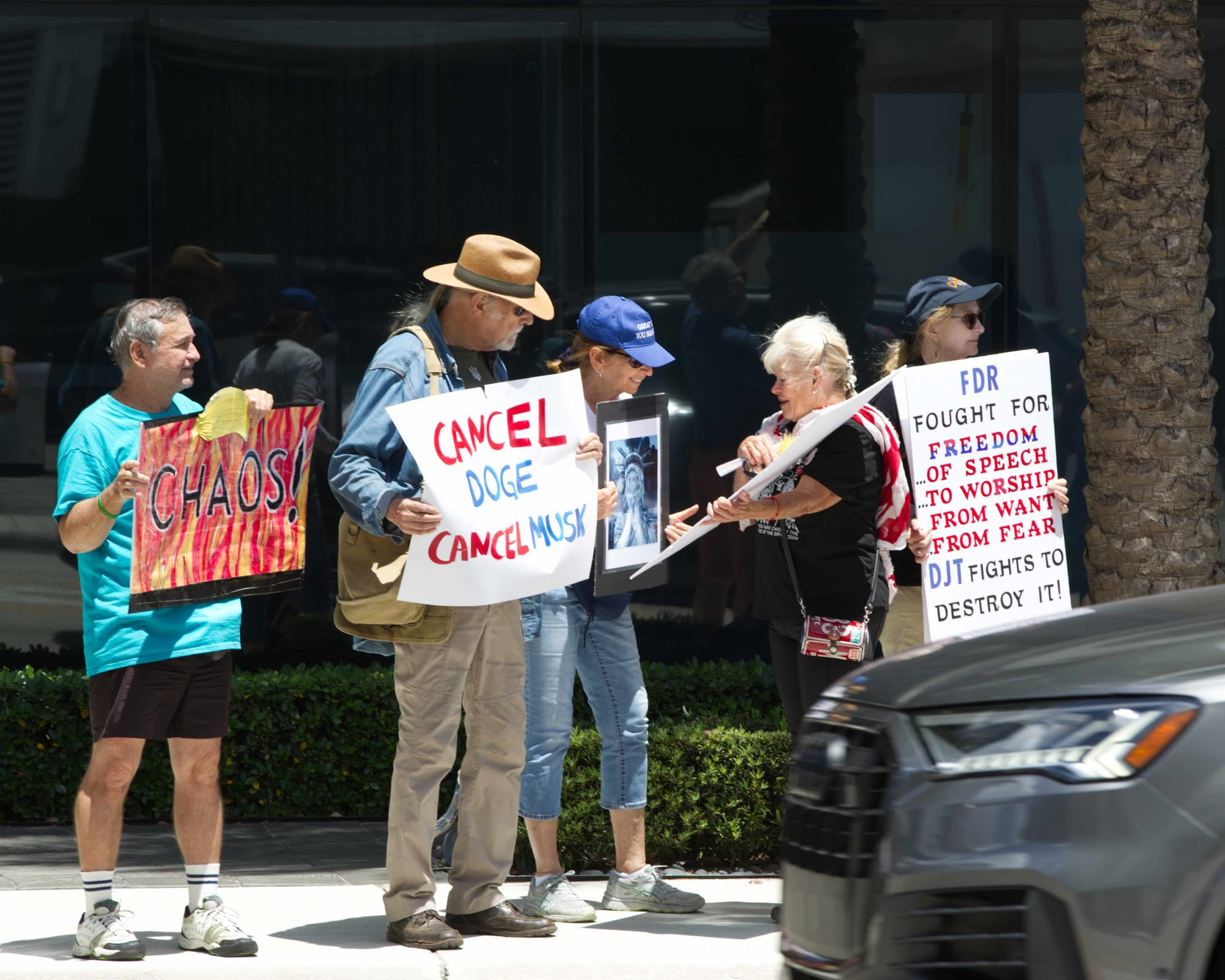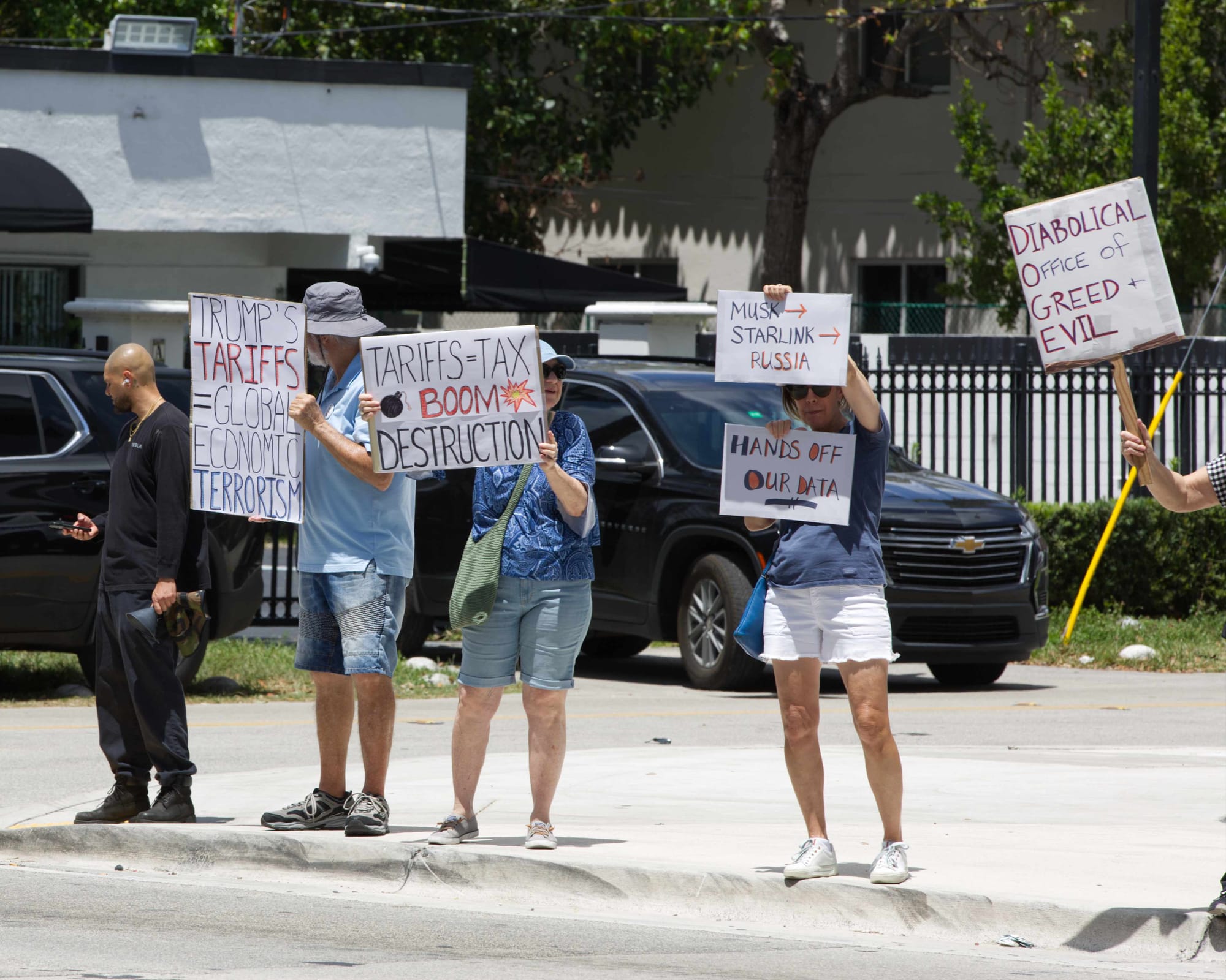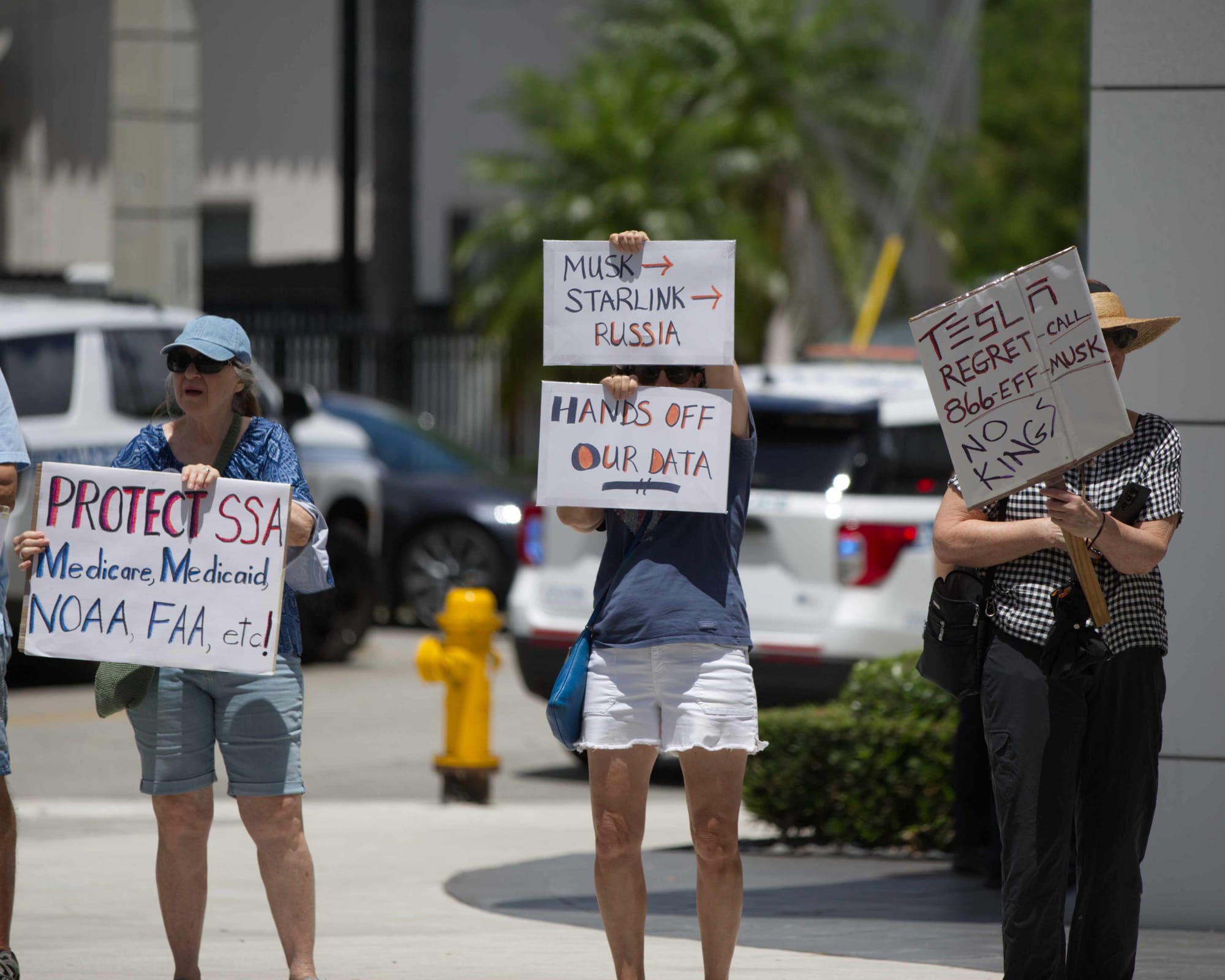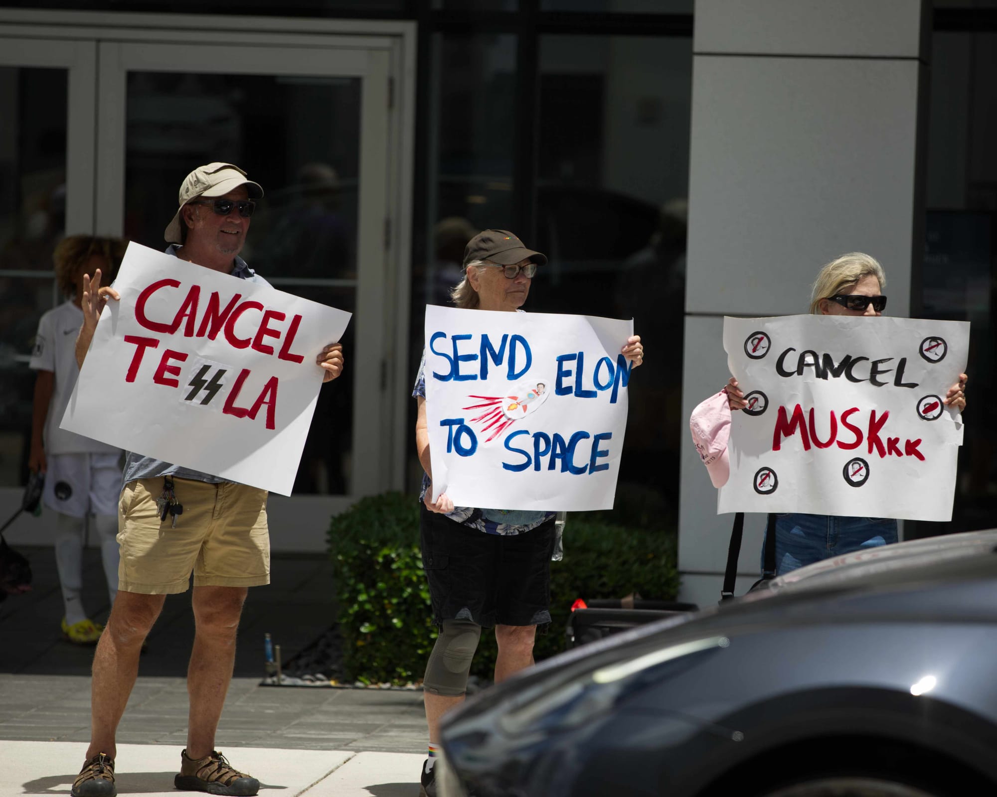 Protestors in Miami, Florida at the Tesla showroom on Bird Road on March 29, 2025.