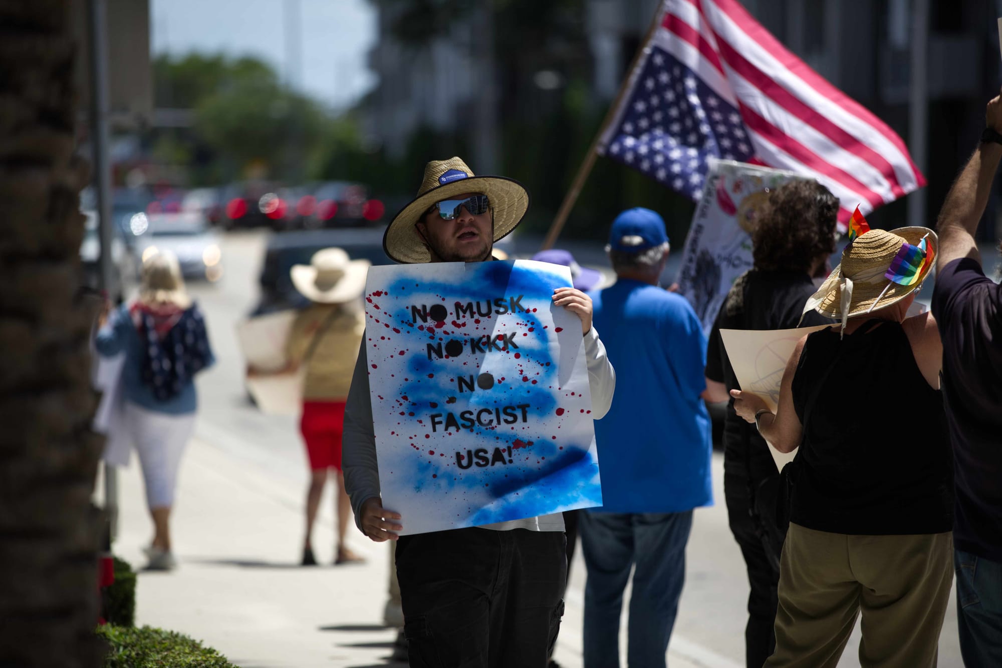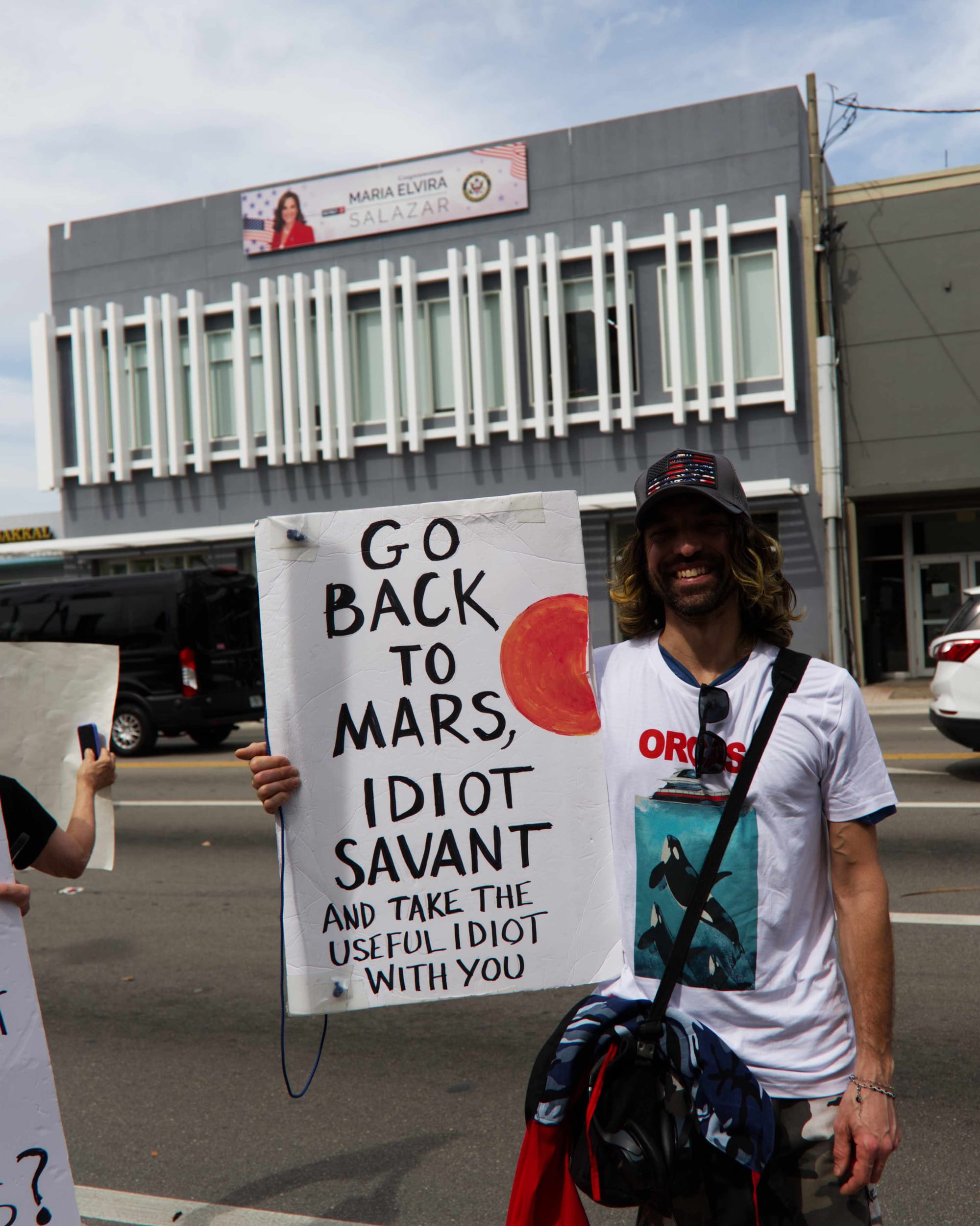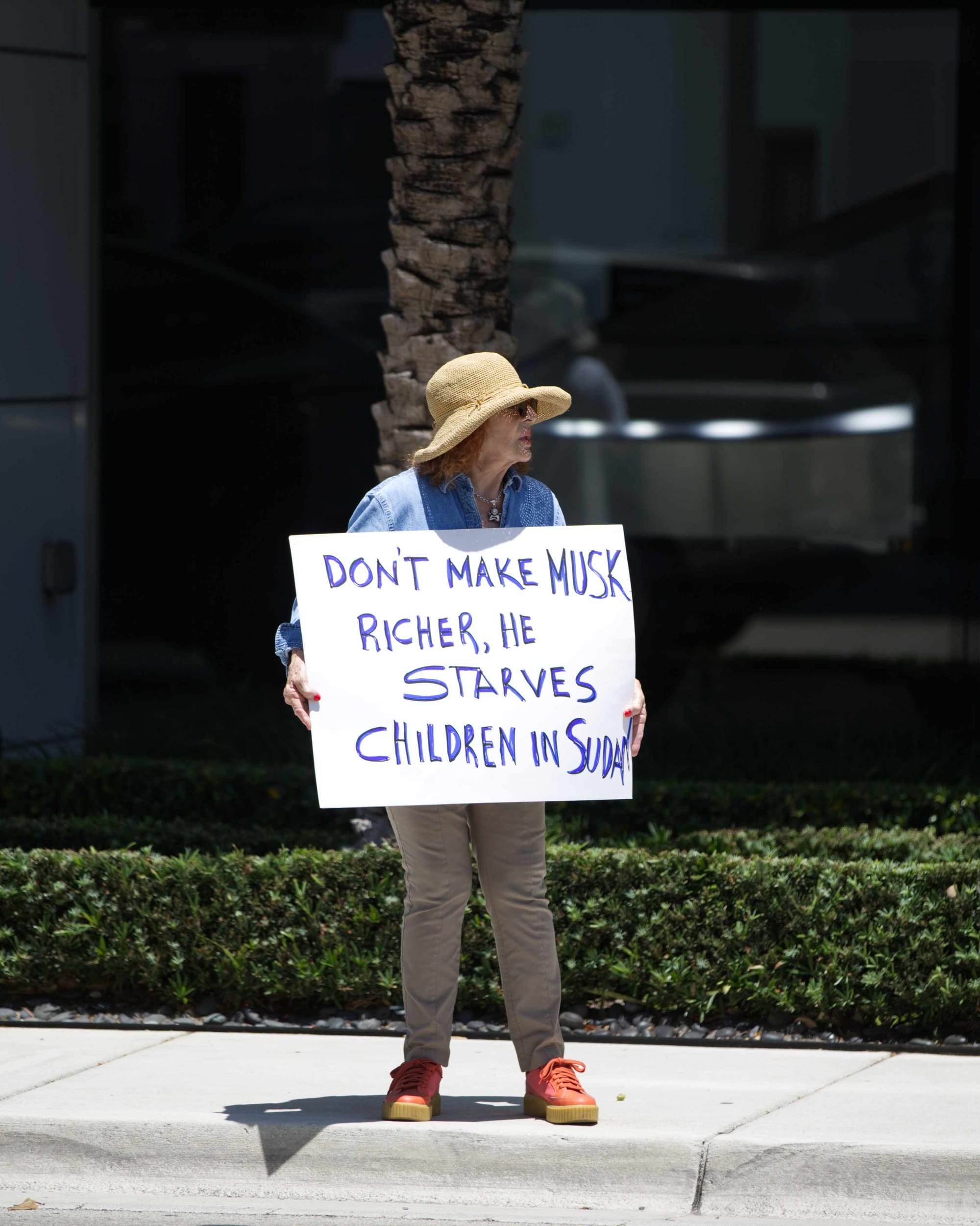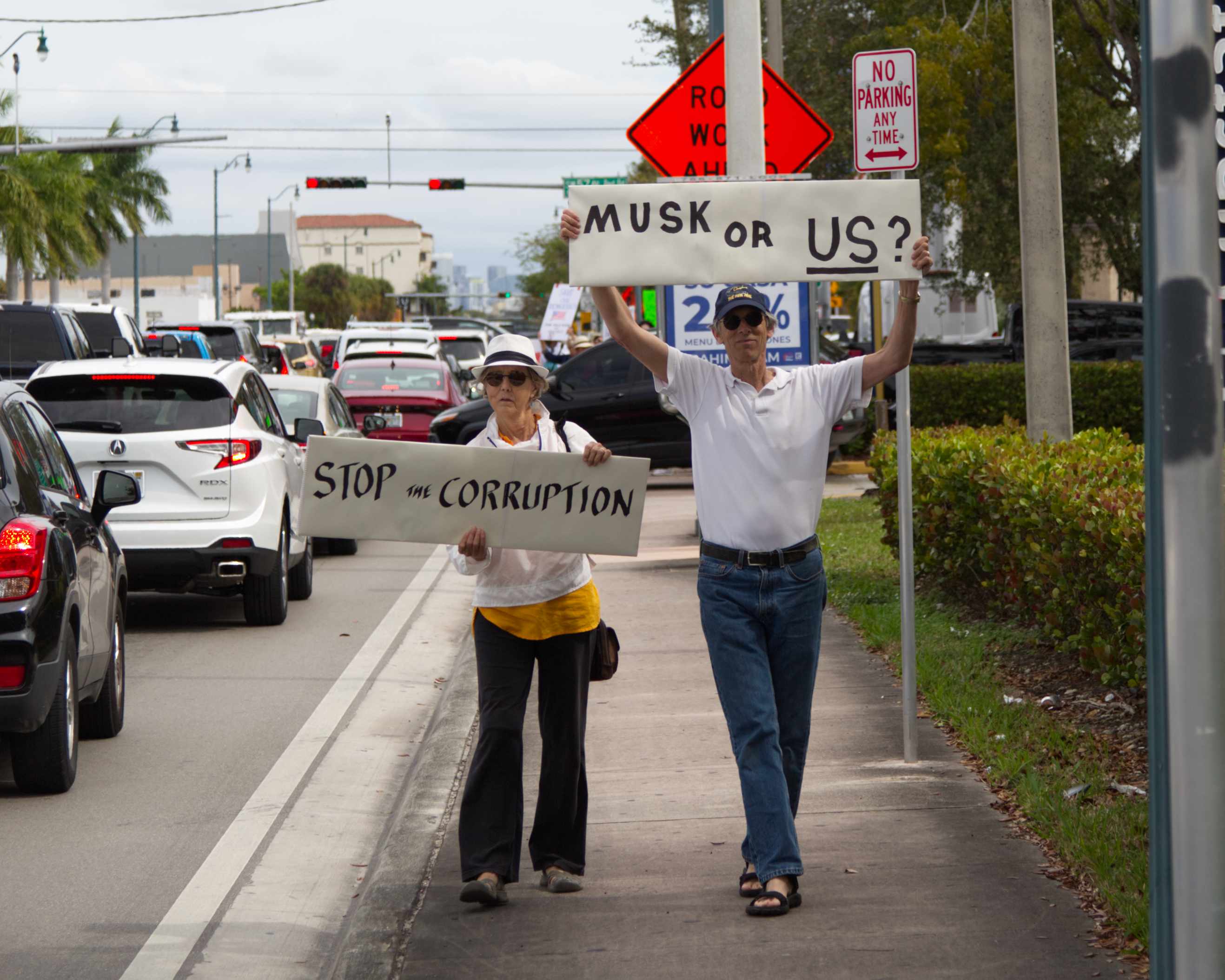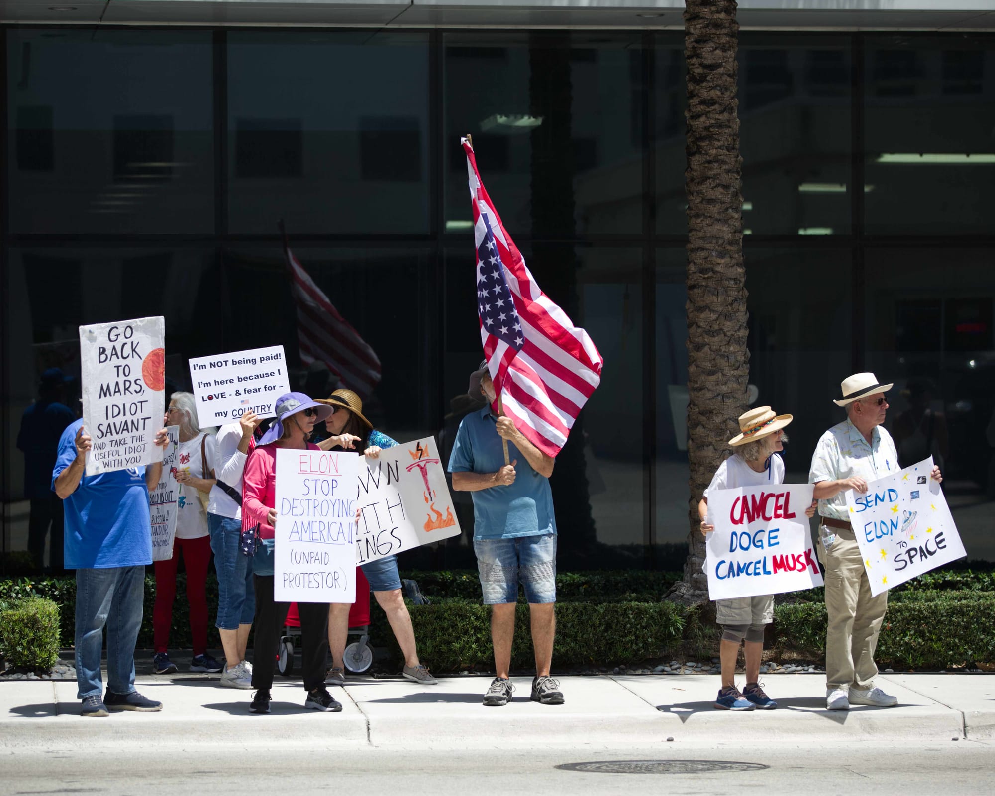 Protestors in Miami, Florida at the Tesla showroom on Bird Road on March 29, 2025.