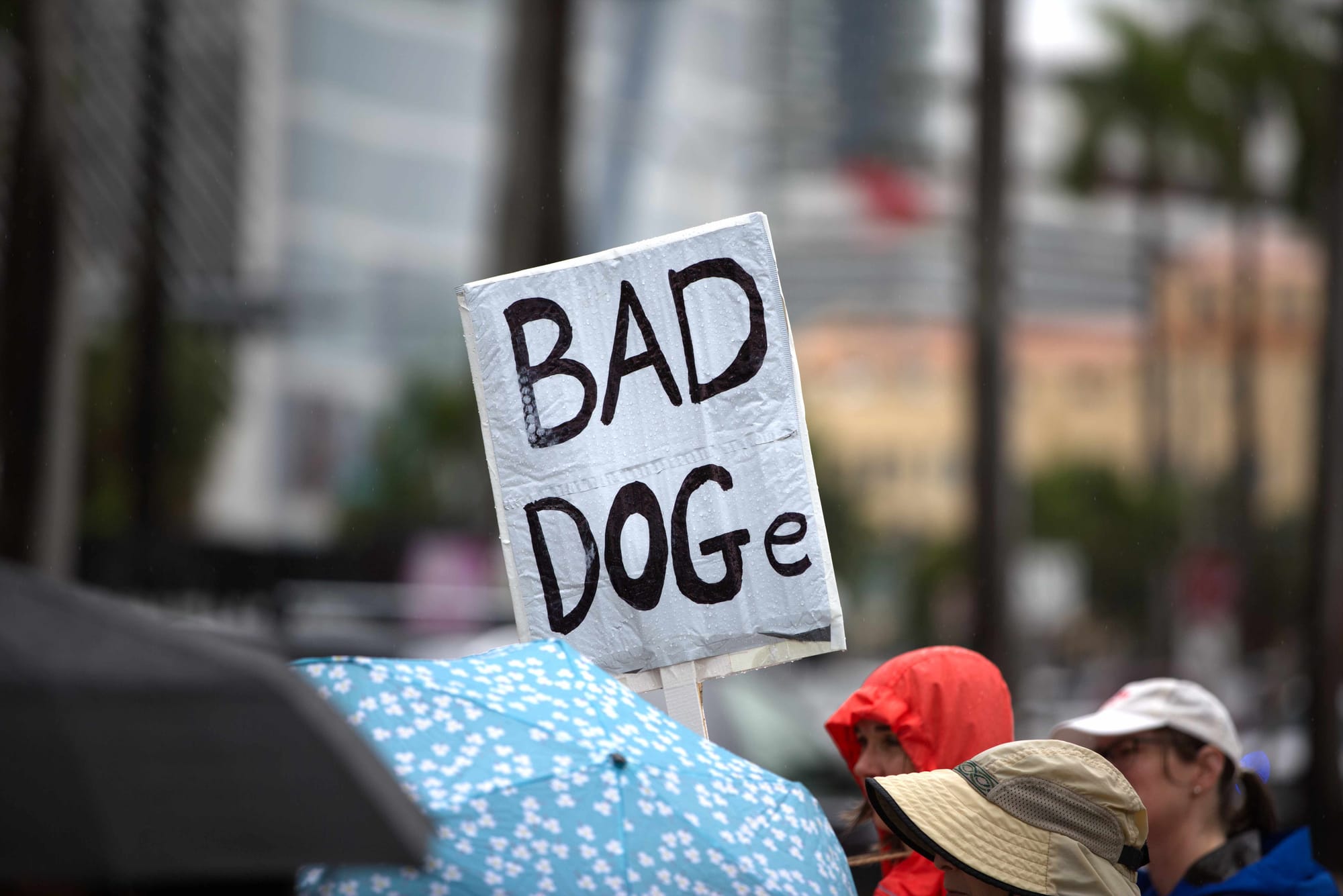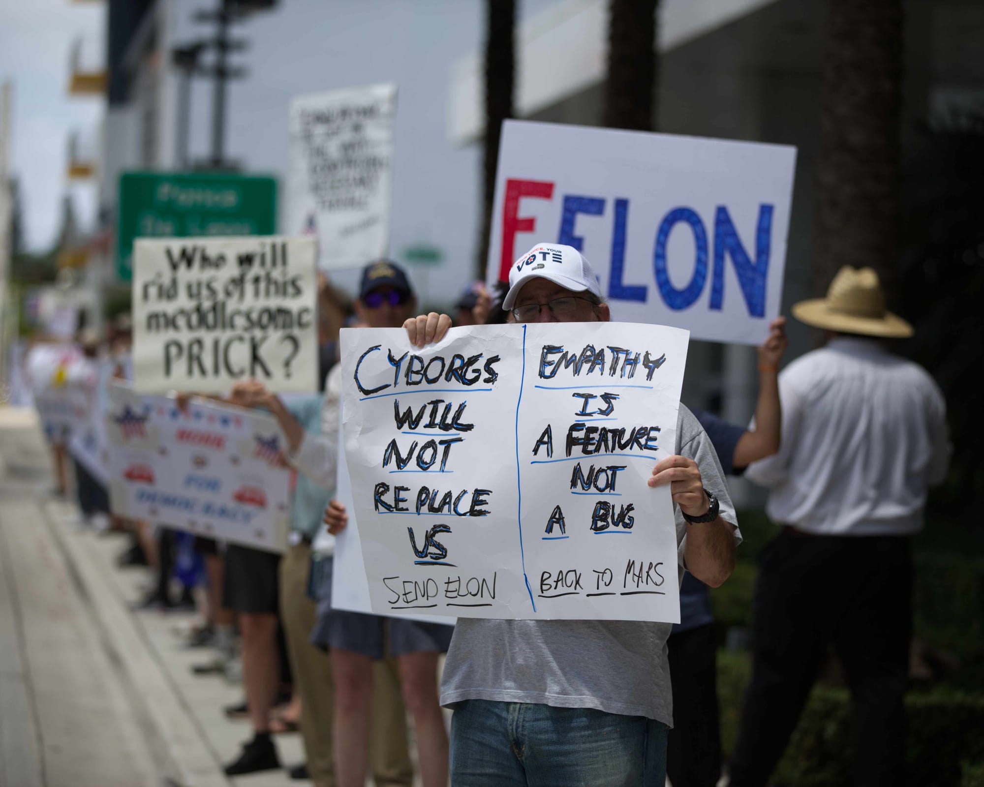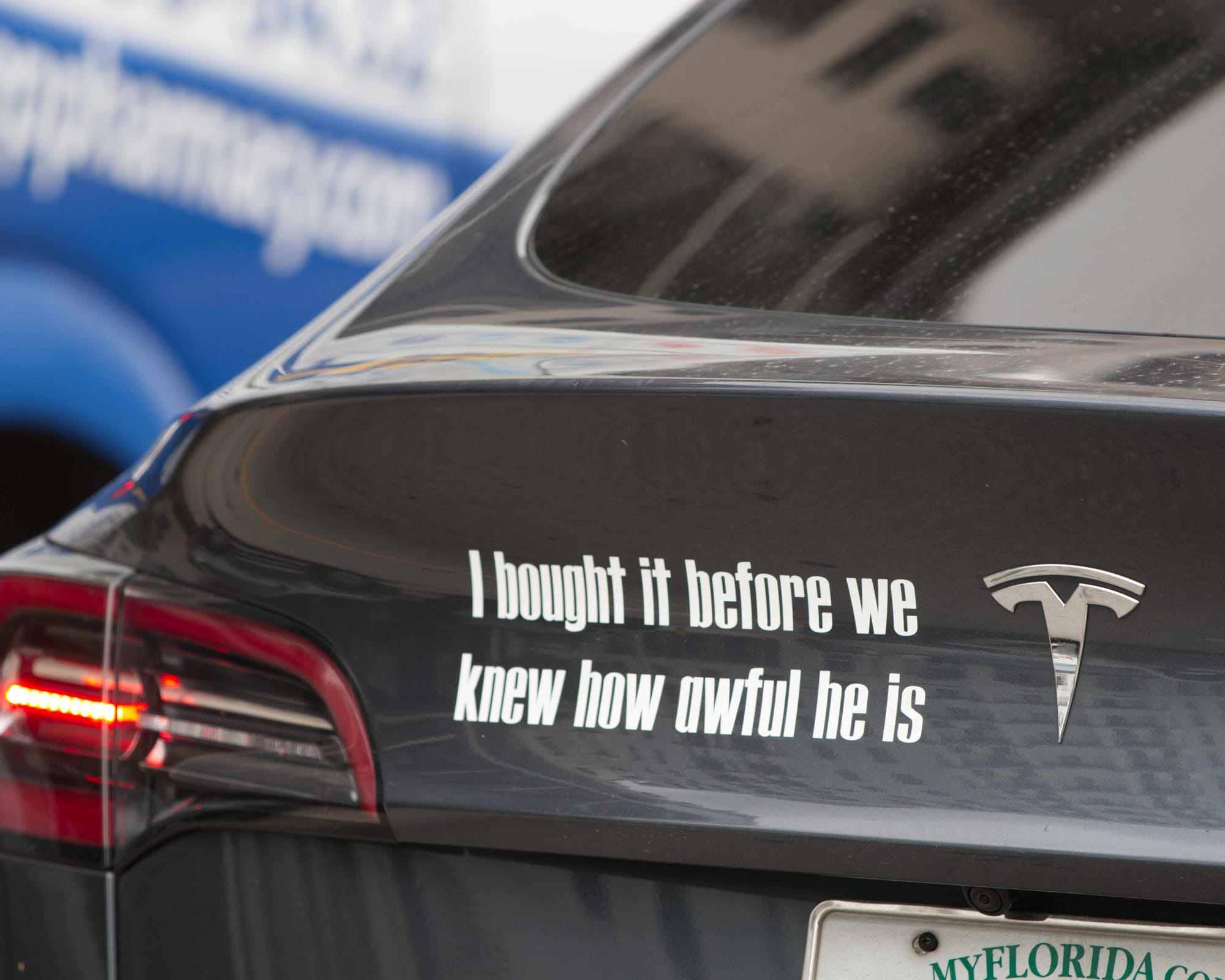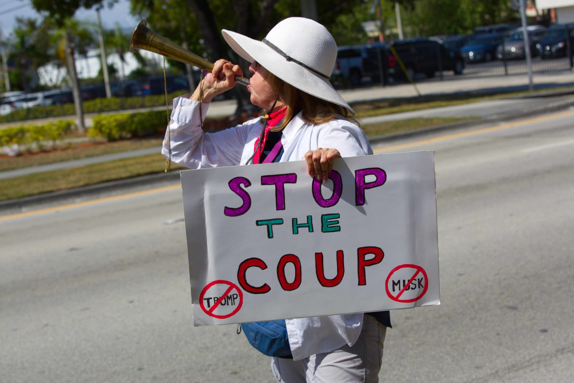 Protestors in Miami, Florida at the Tesla showroom on Bird Road on March 29, 2025.