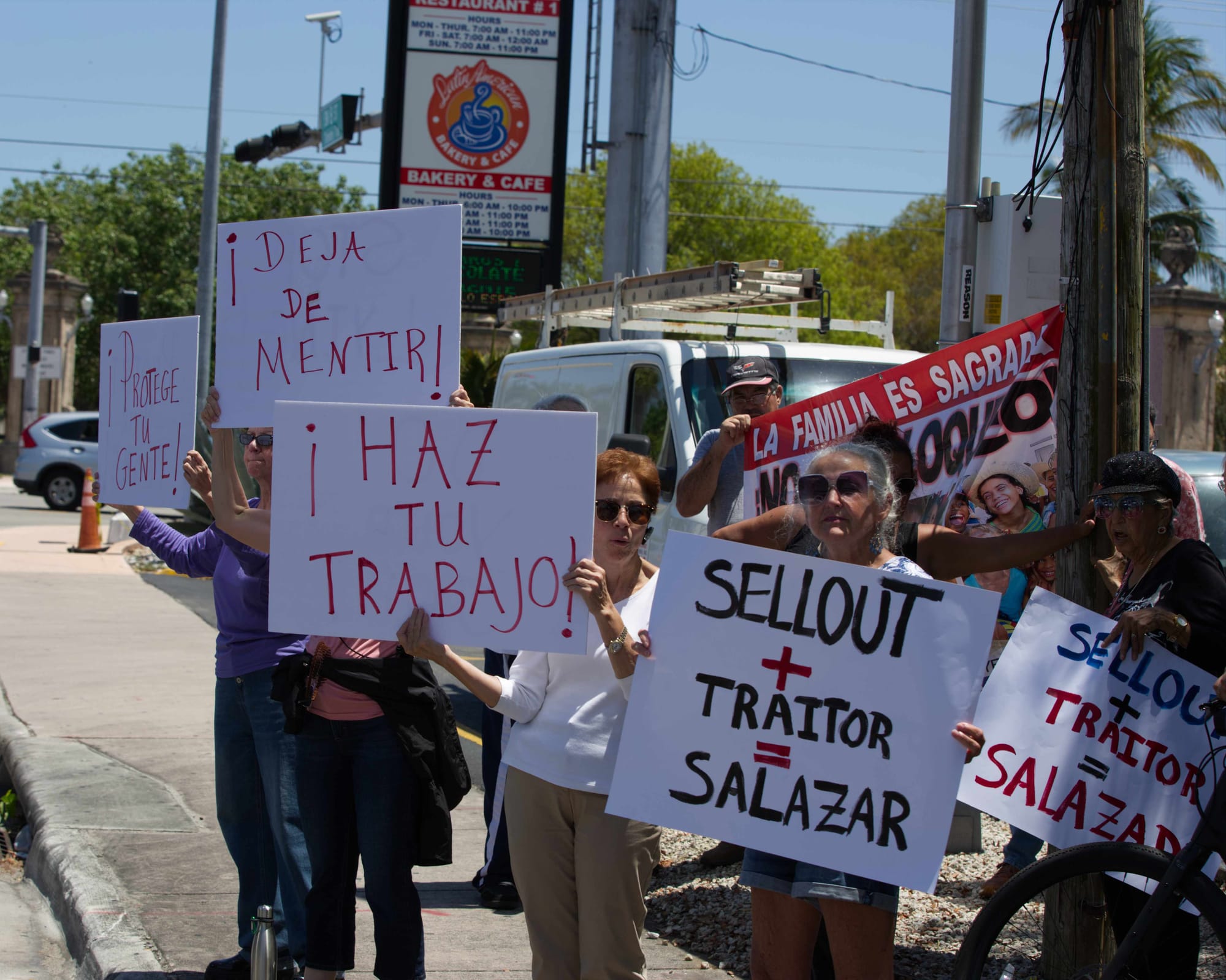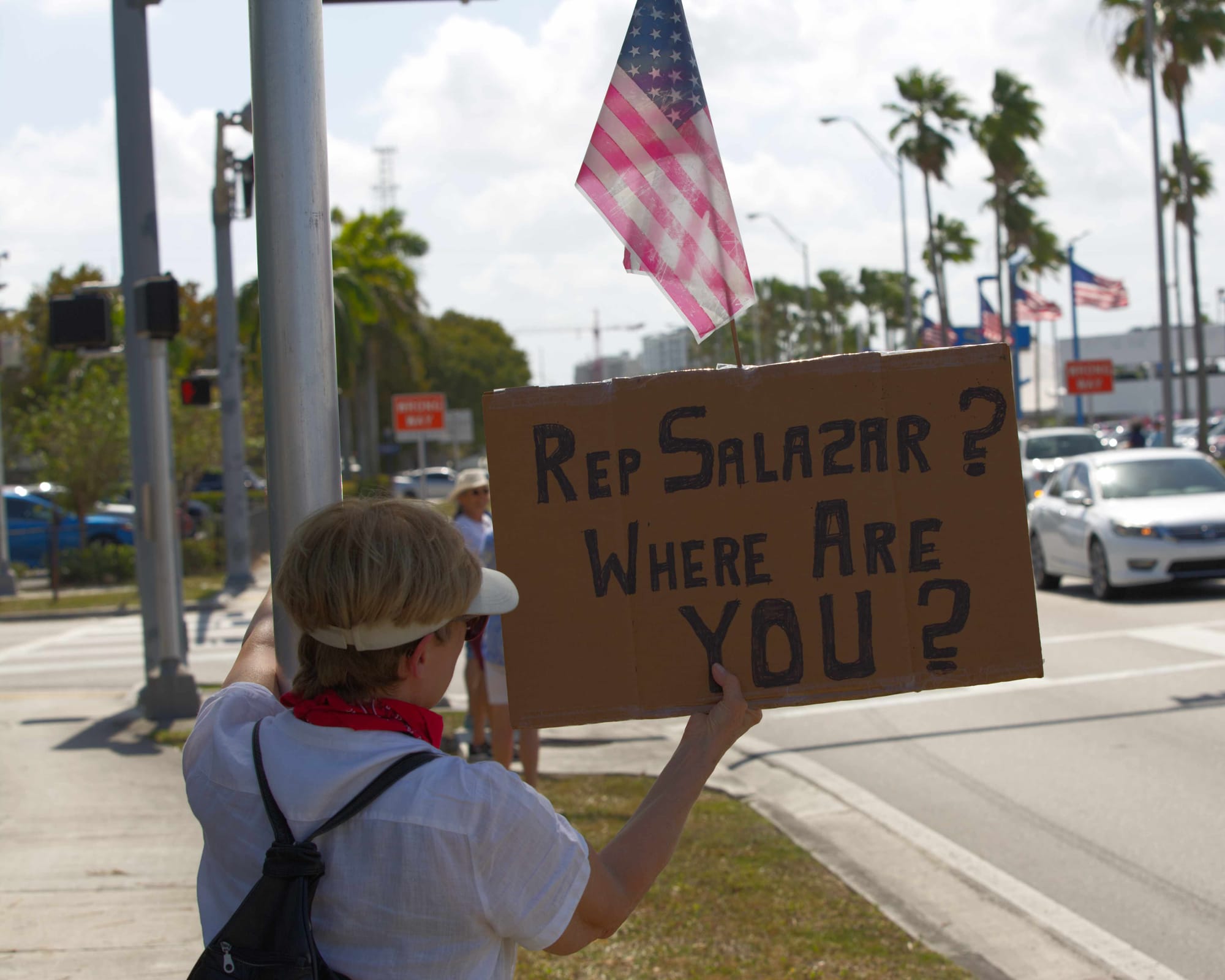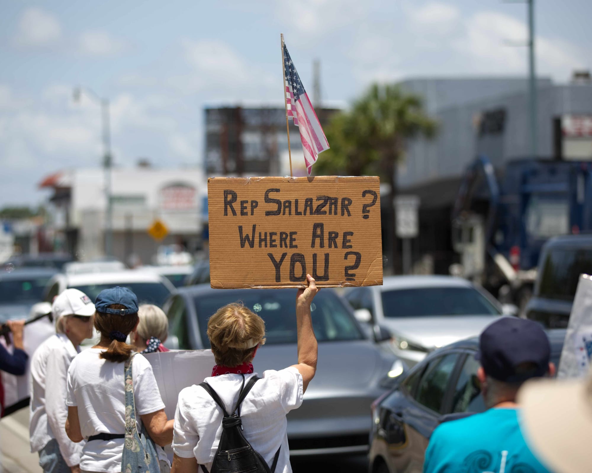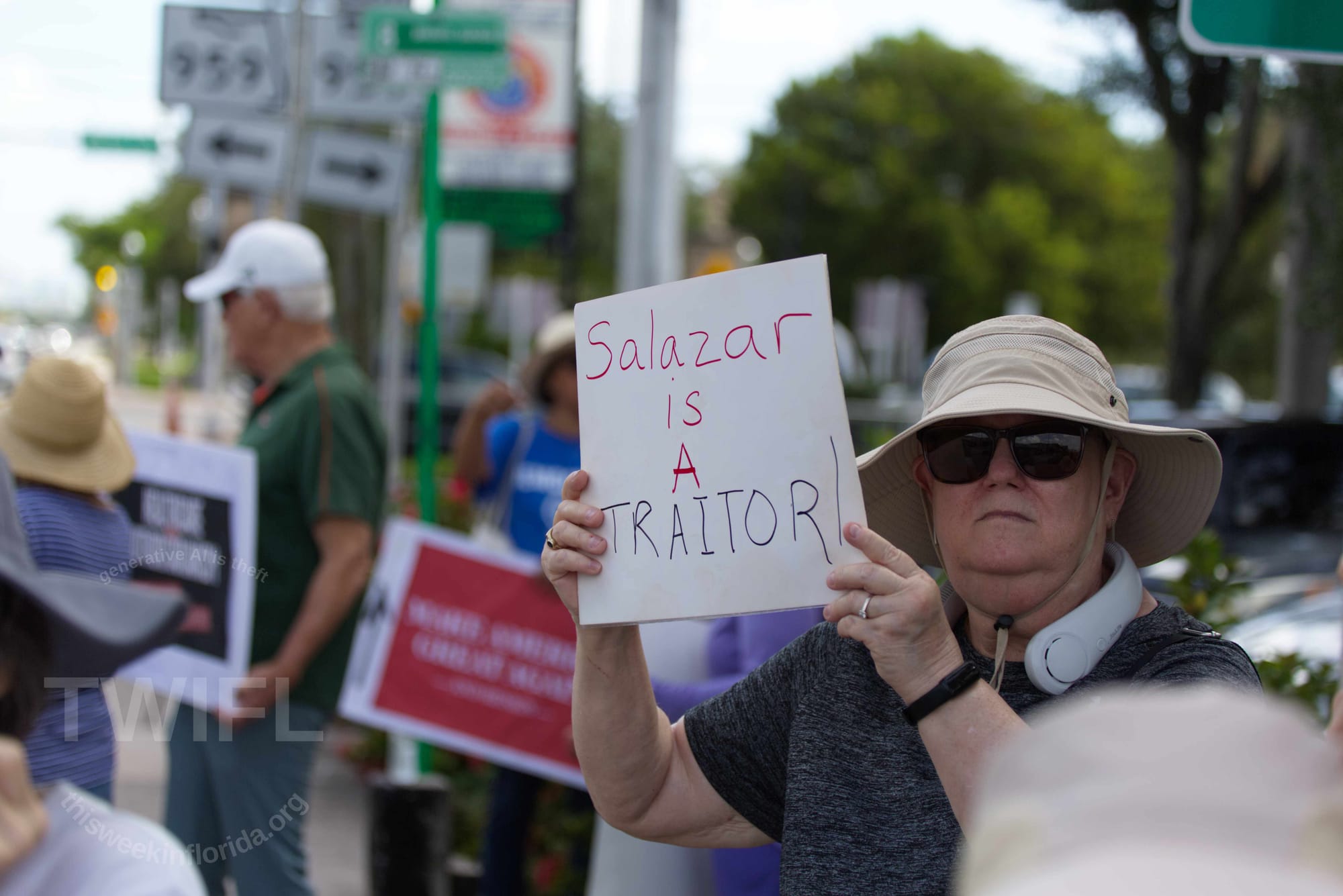 About 20 protesters defied the Miami heat to demand Maria Salazar host a town hall meeting.