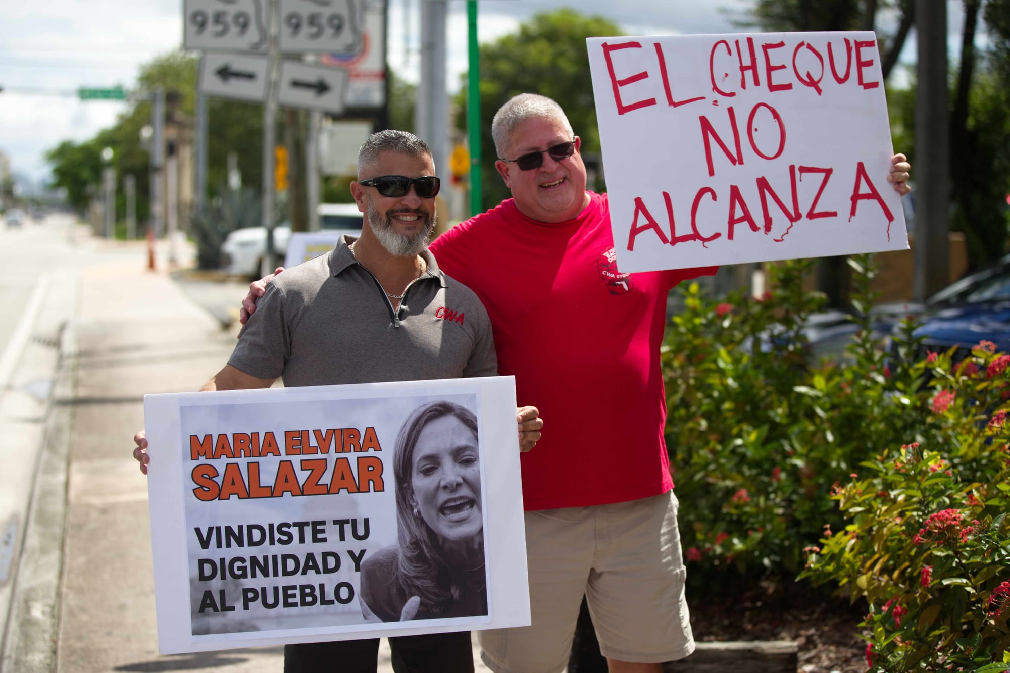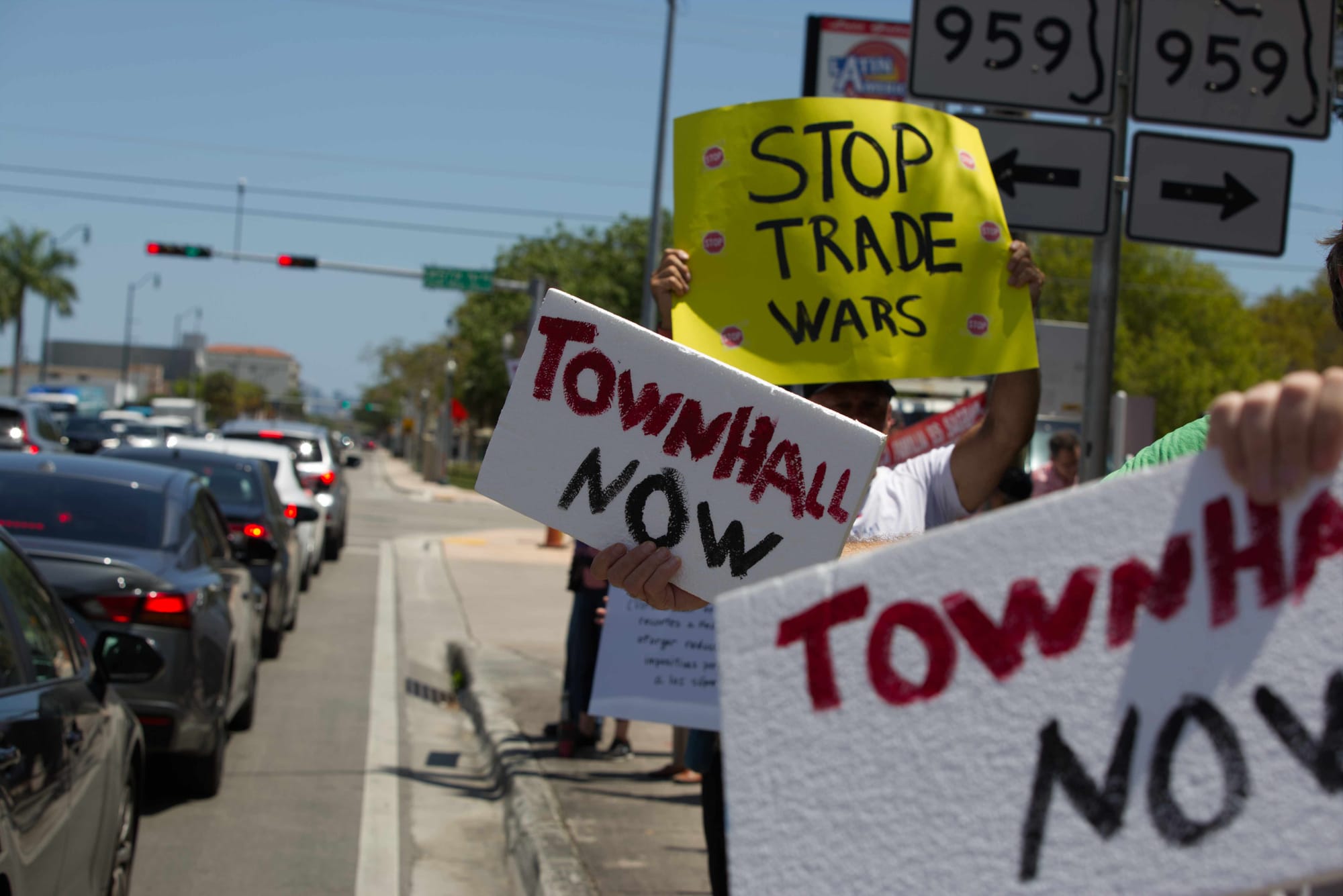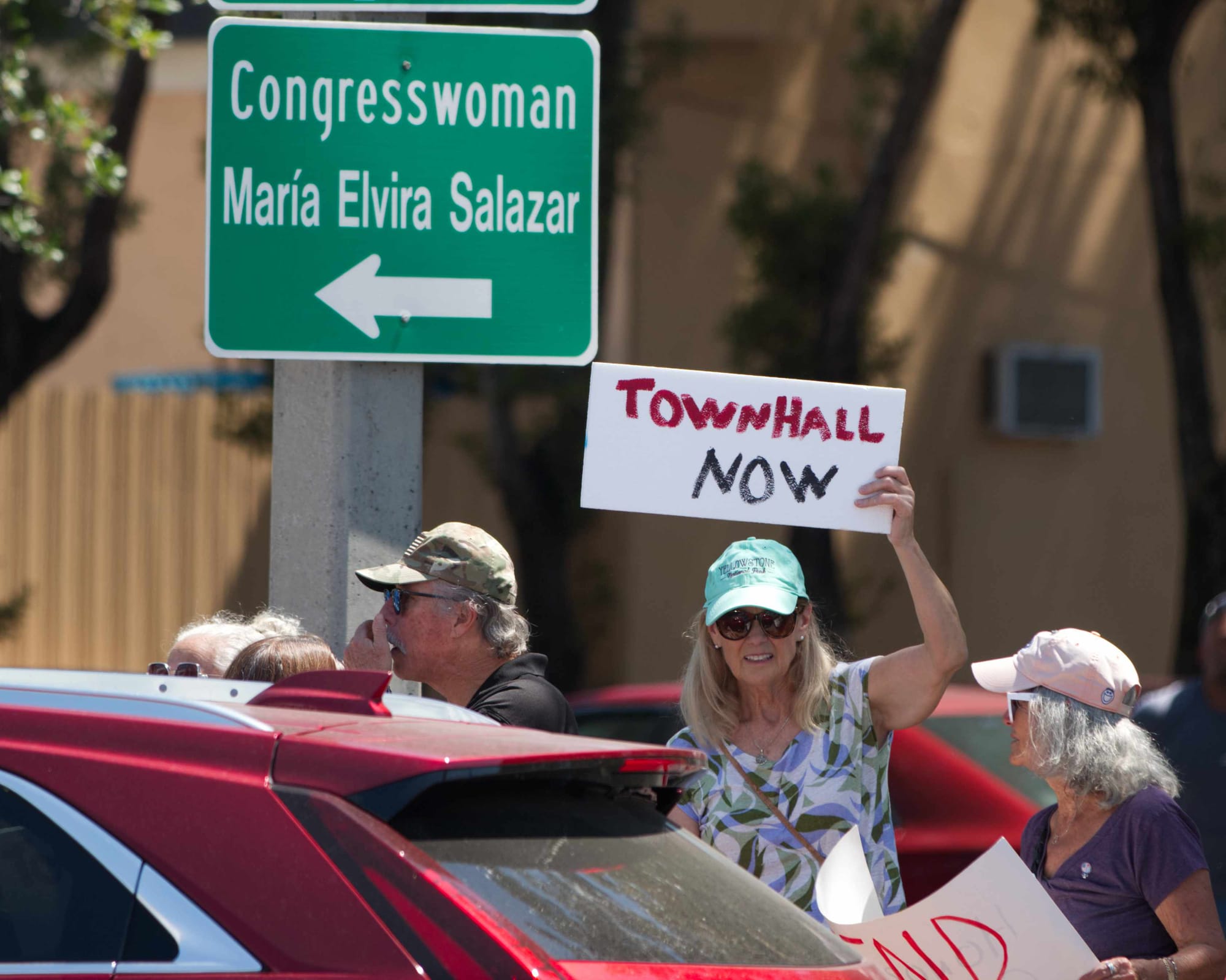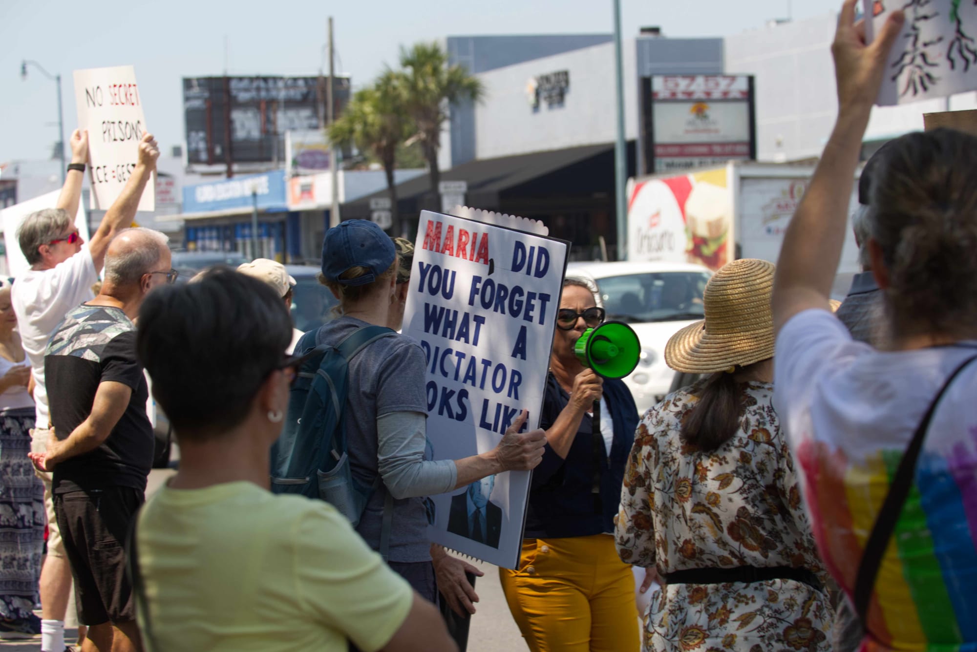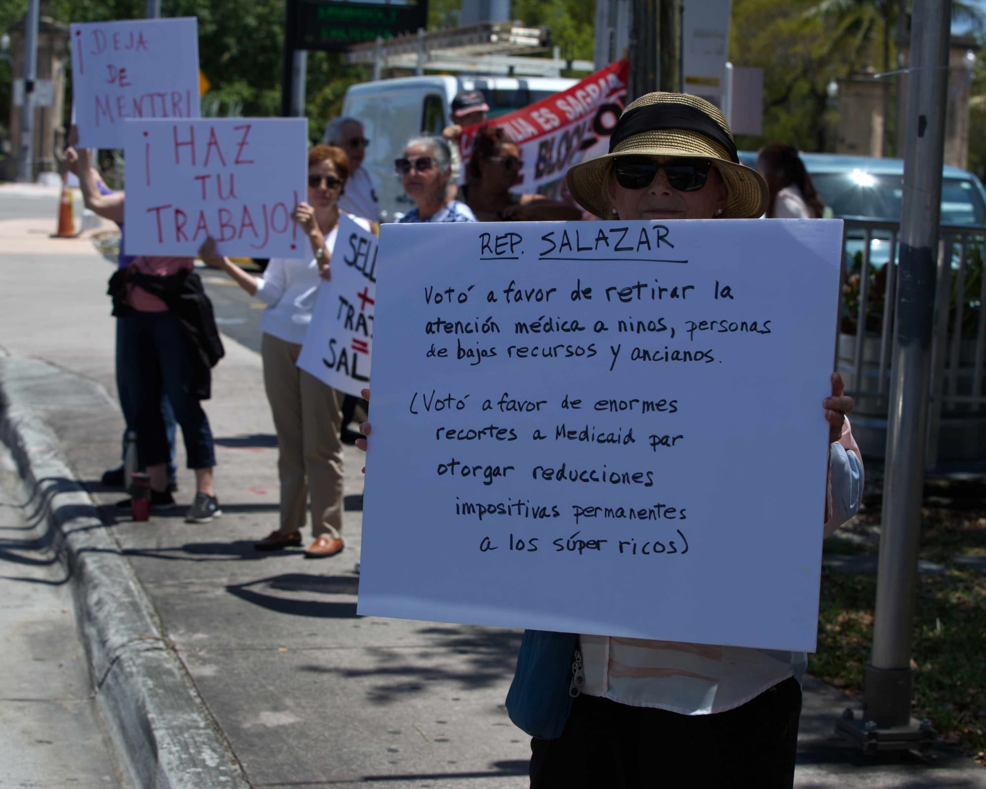 About 20 protesters defied the Miami heat to demand Maria Salazar host a town hall meeting.
