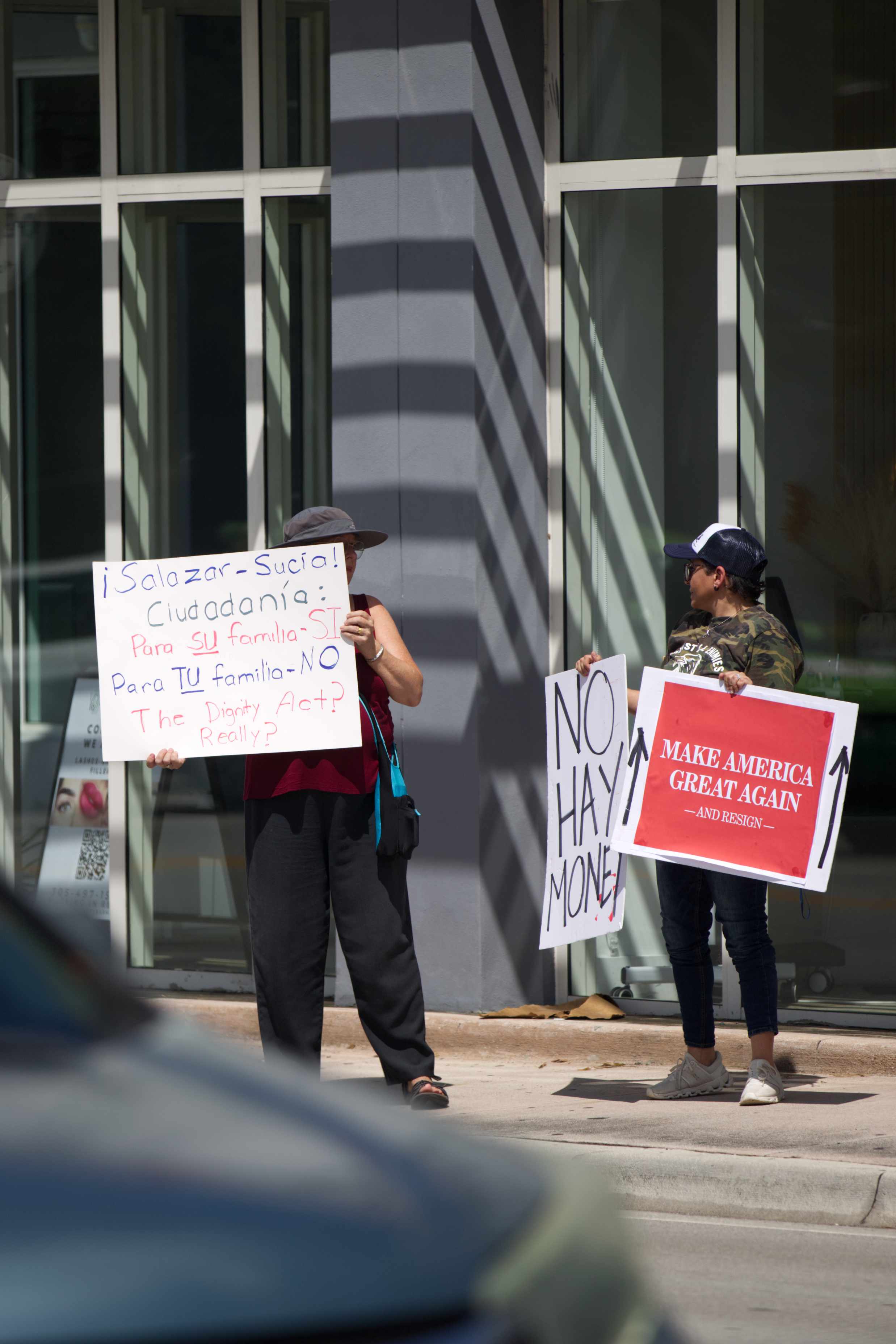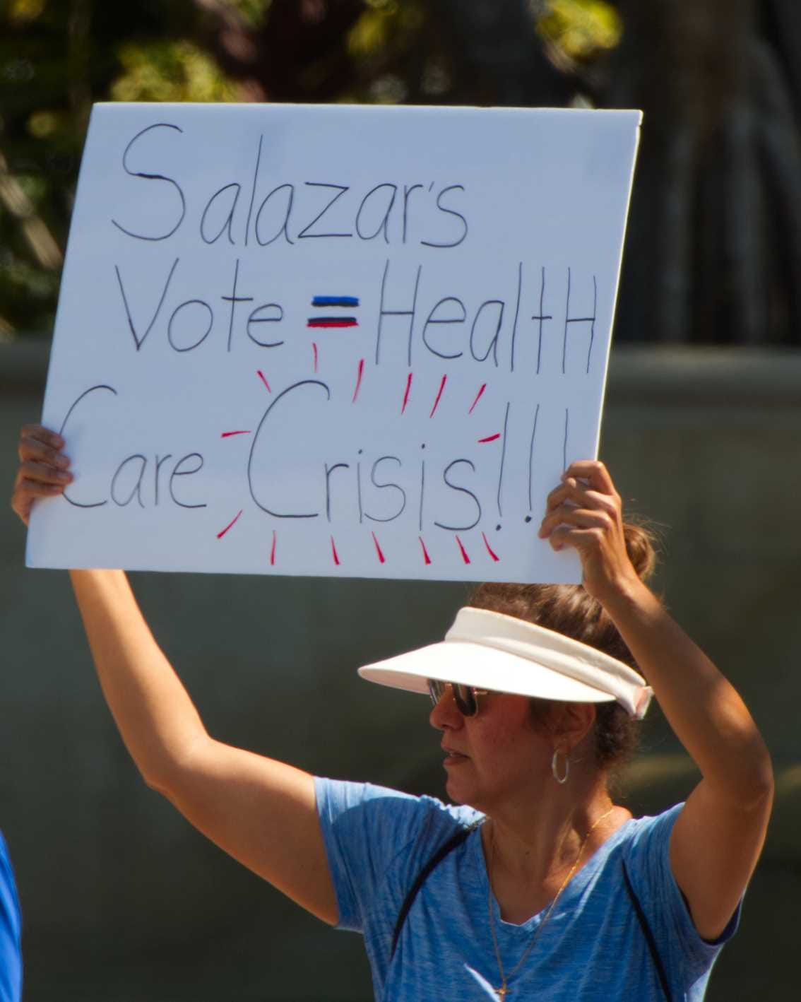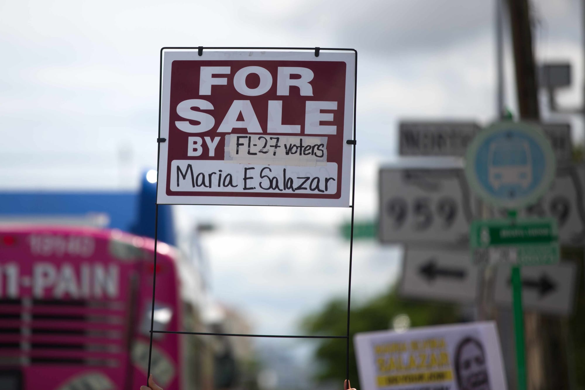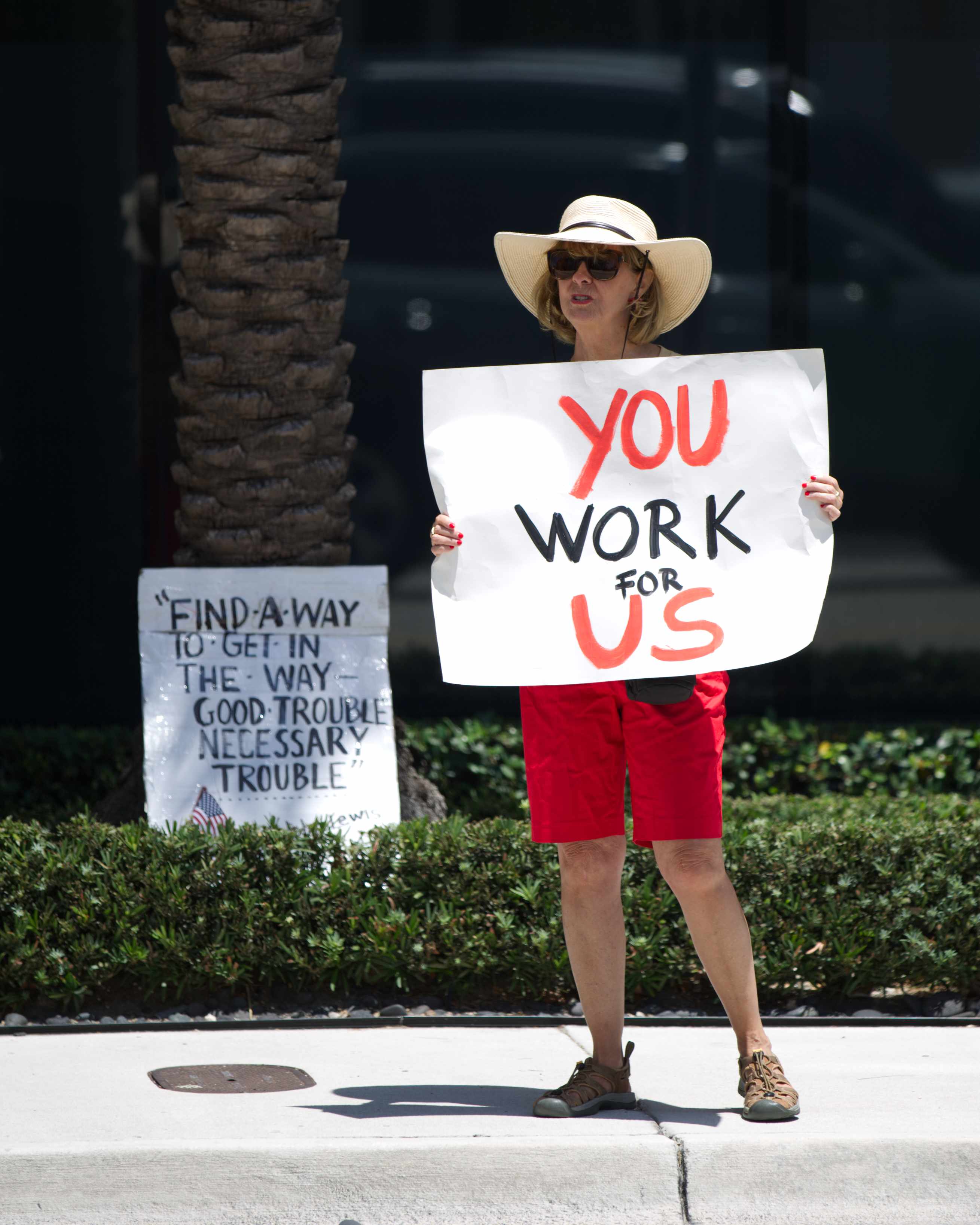 About 20 protesters defied the Miami heat to demand Maria Salazar host a town hall meeting.