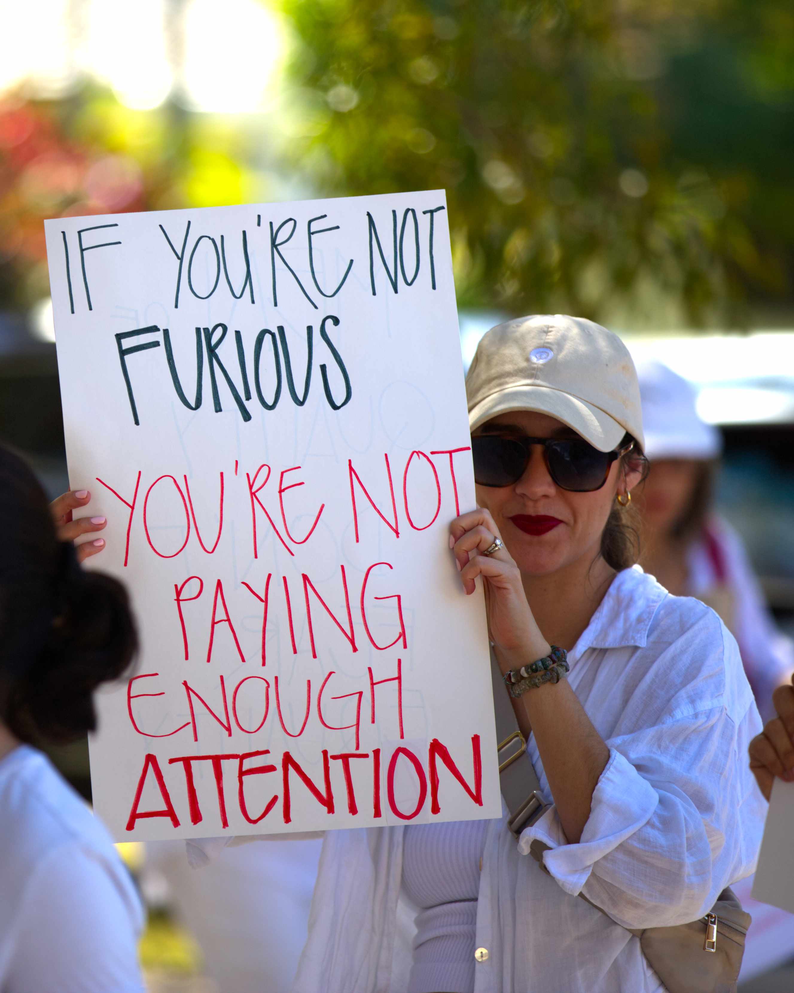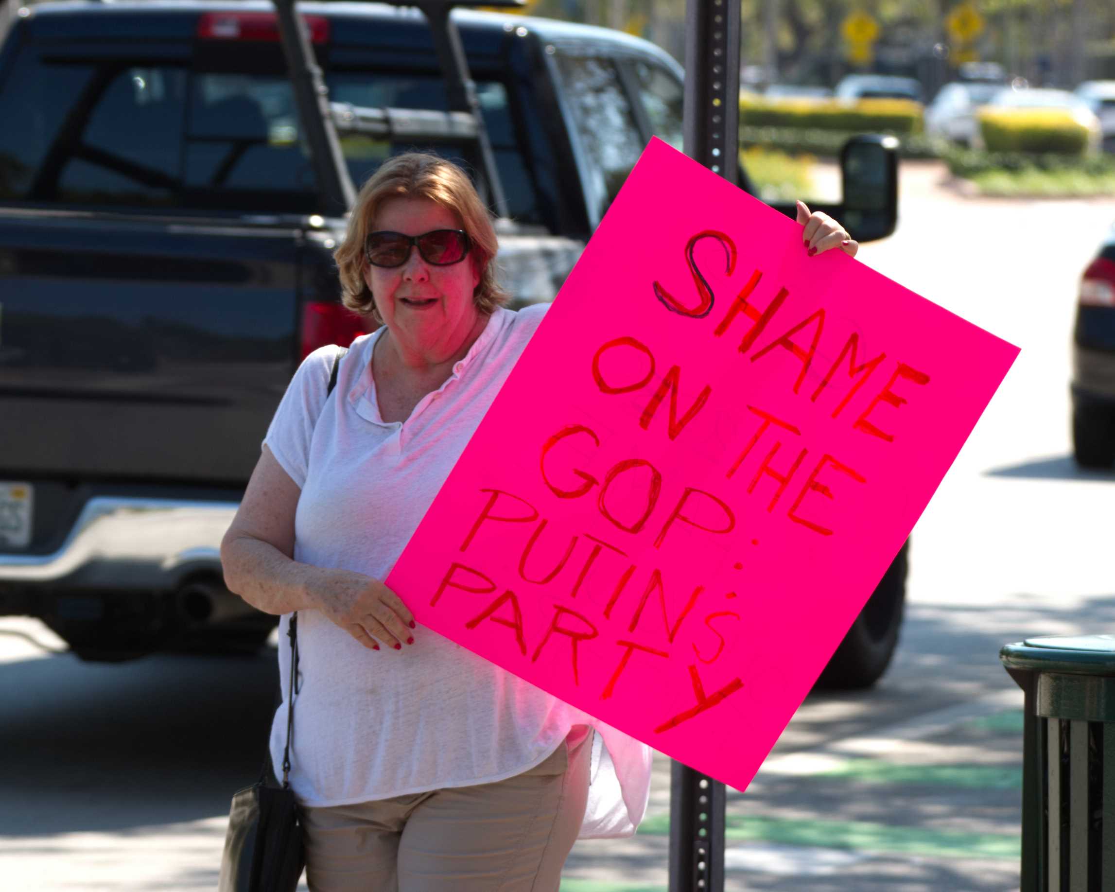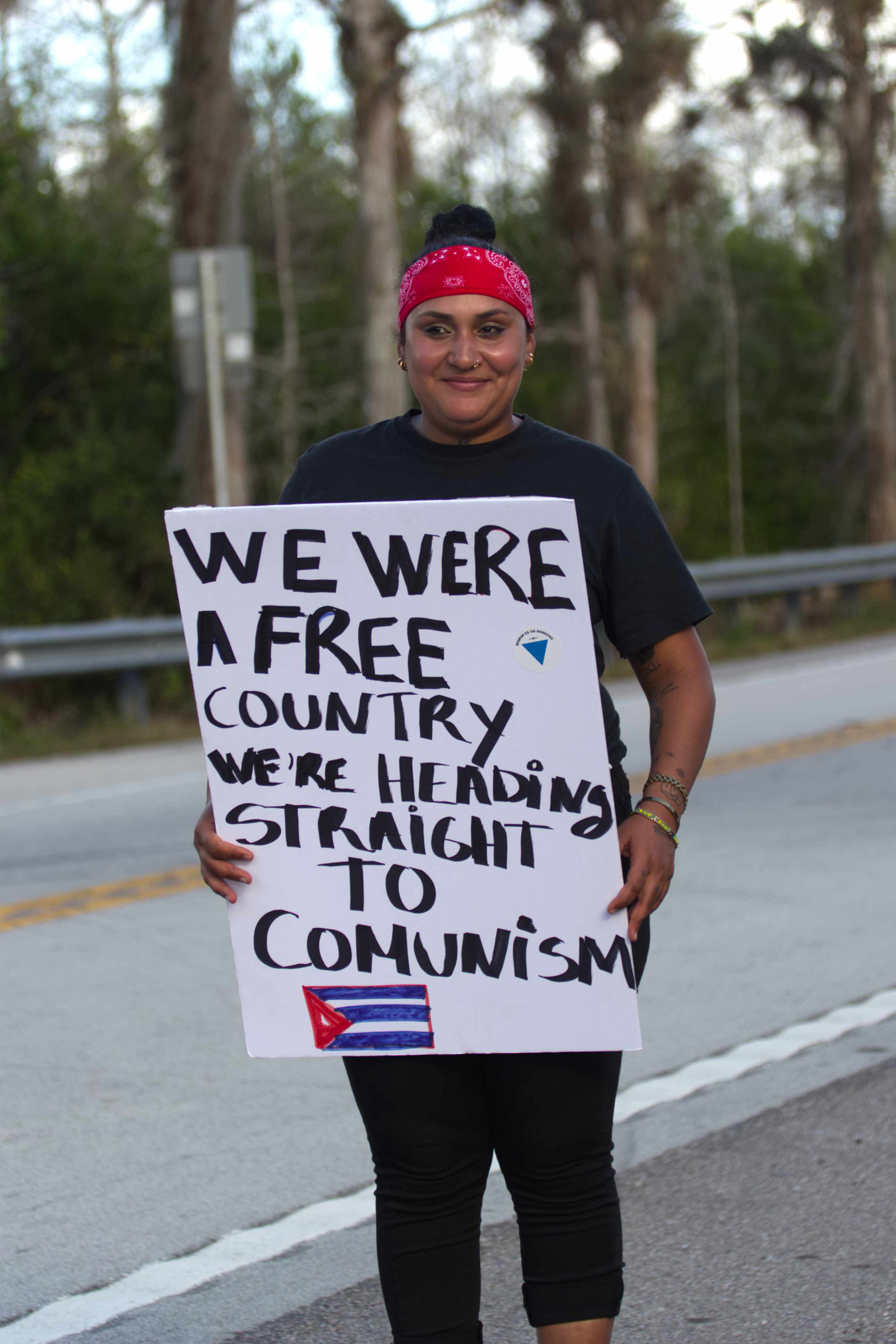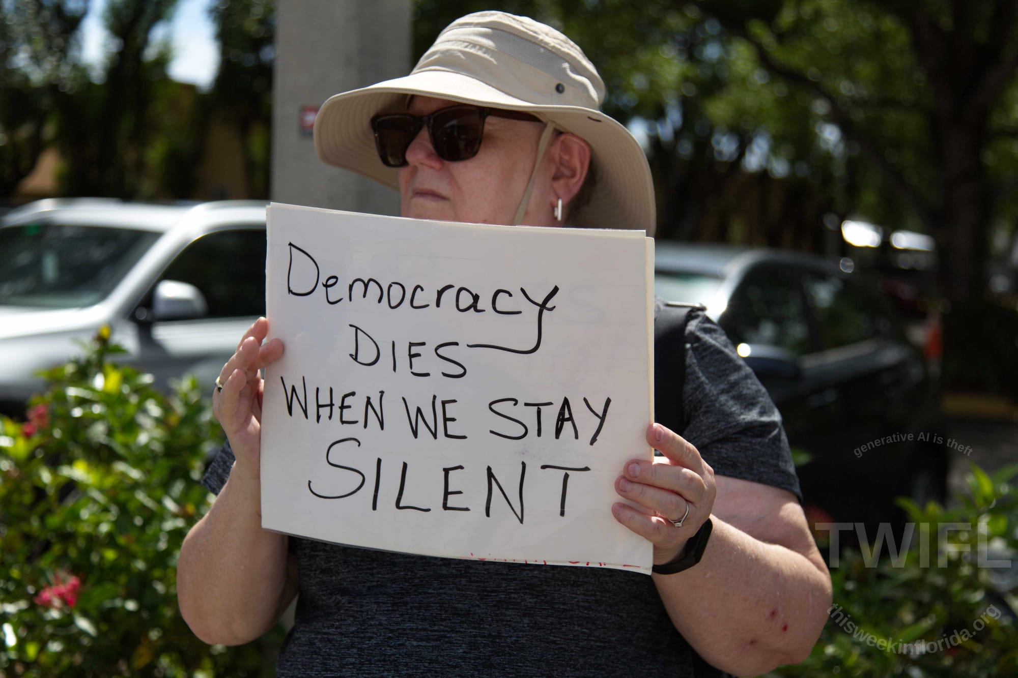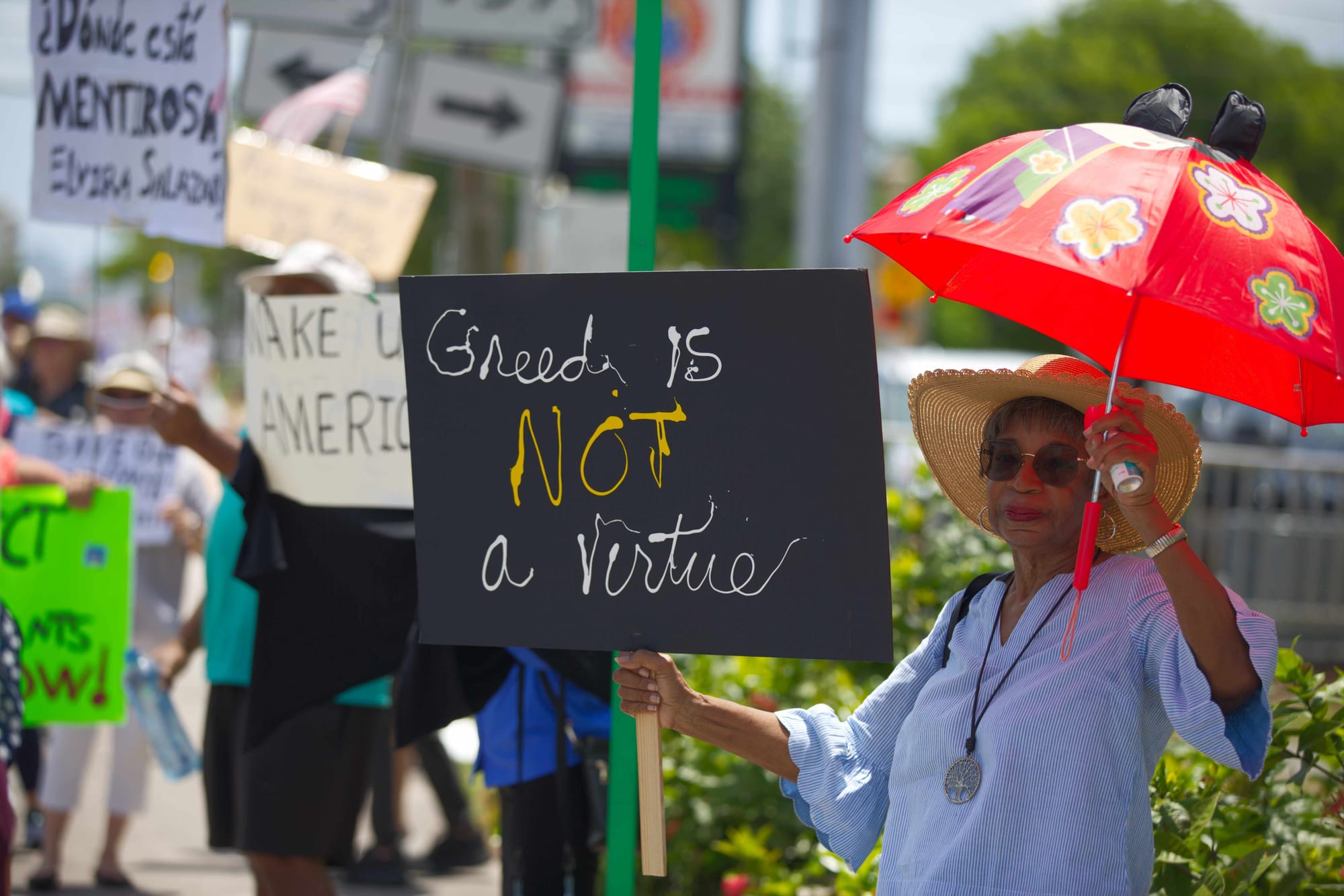 About 20 protesters defied the Miami heat to demand Maria Salazar host a town hall meeting.