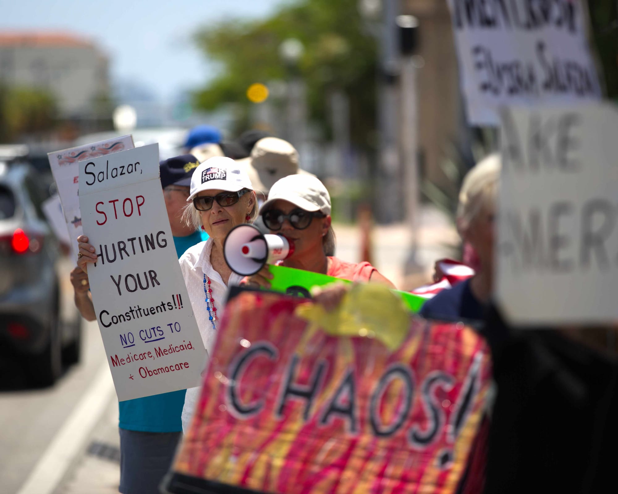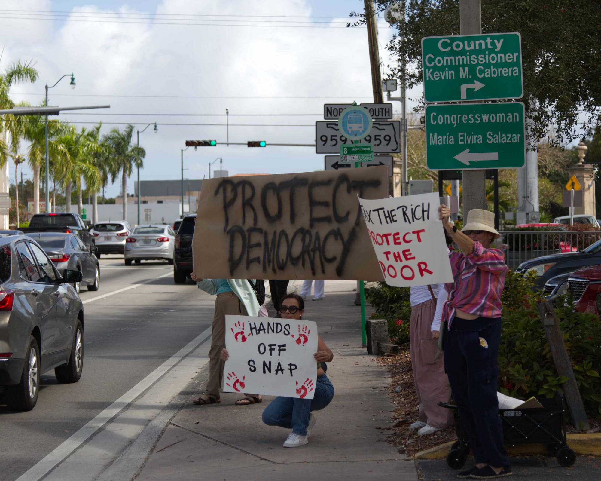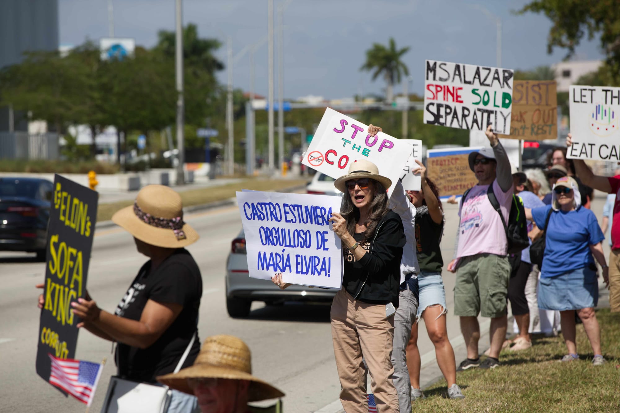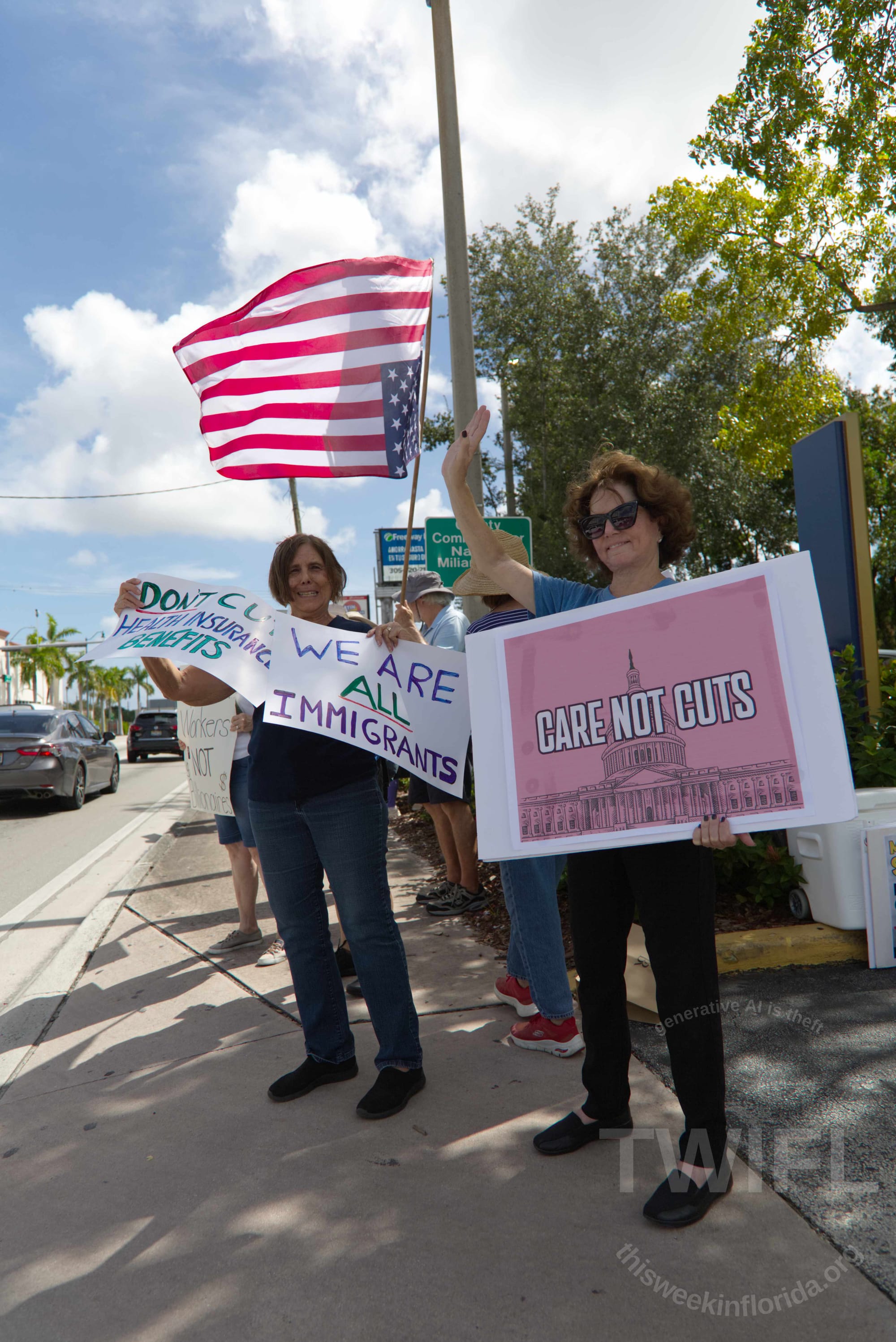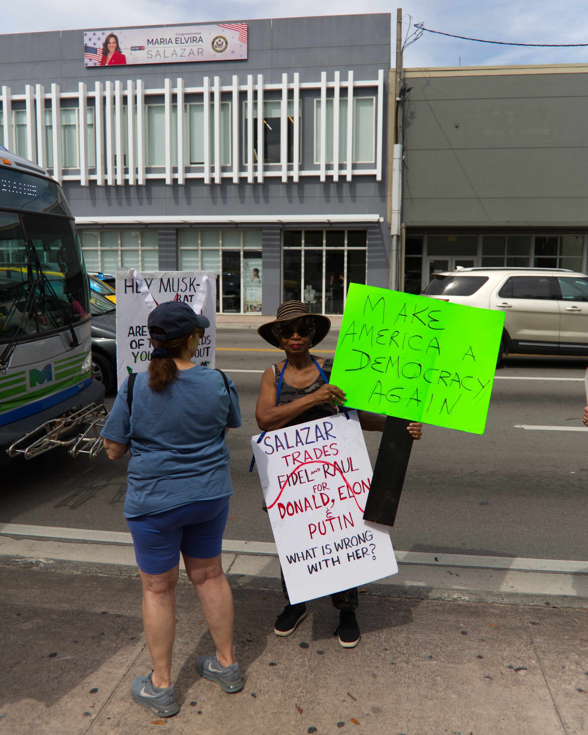 SEIU Protesting Maria Elvira Salazar across from her Calle Ocho Office April 24, 2025.