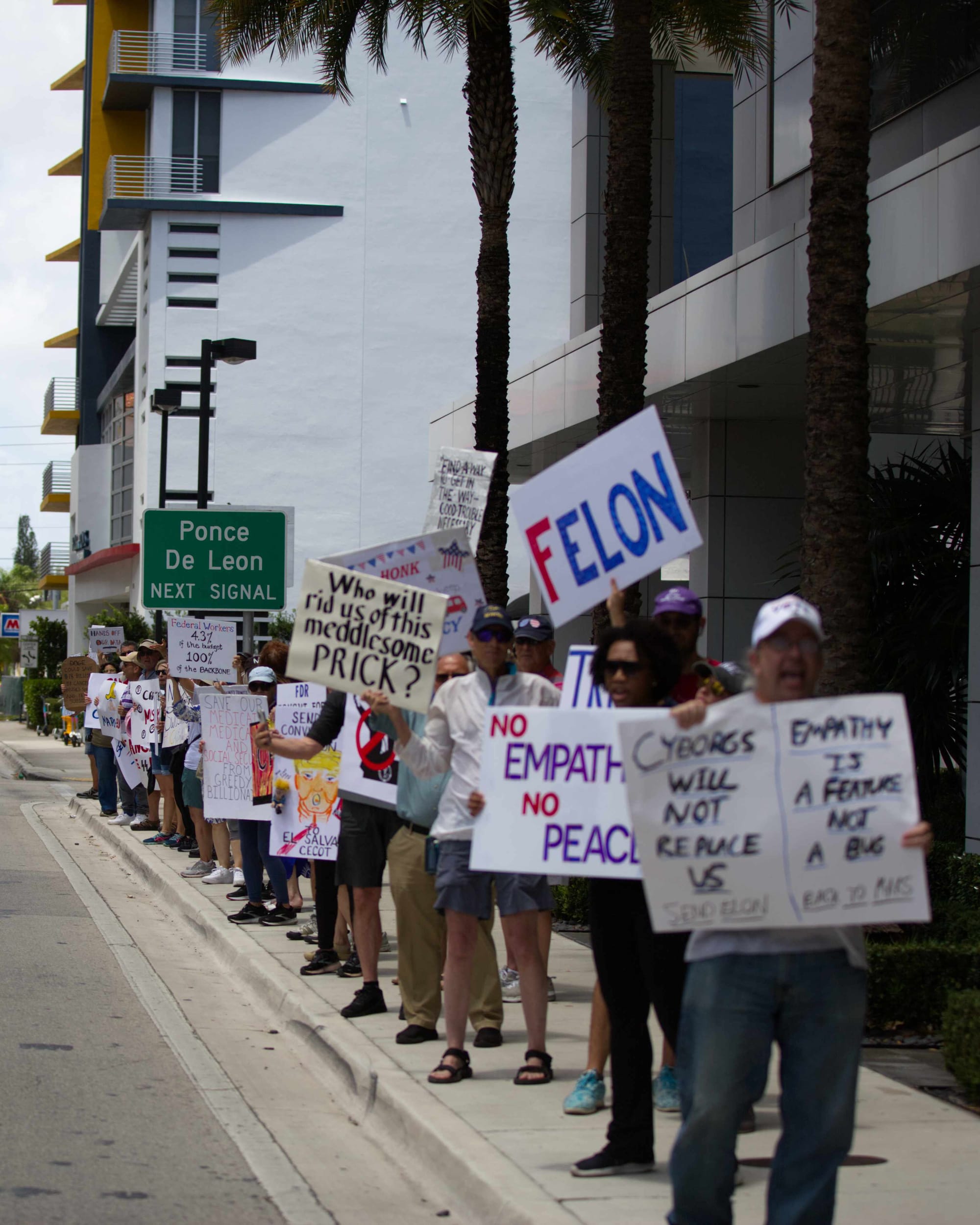 I never found parking at the Krome protest and at the time, about 15 minutes into the scheduled start, there were only a few protestors there. Apparently, that changed after I left for the Tesla Takedown, which was only about 9 miles away but because it's Miami took an hour to get to. I'm absolutely not a fan of Instagram or any other Meta product but this video has some good images from the protest. I did not take any image on the Instagram link.
