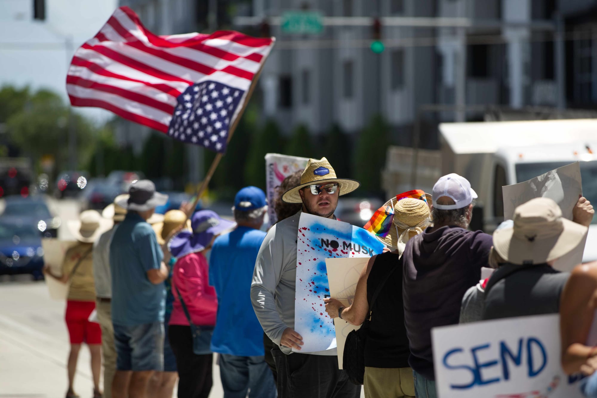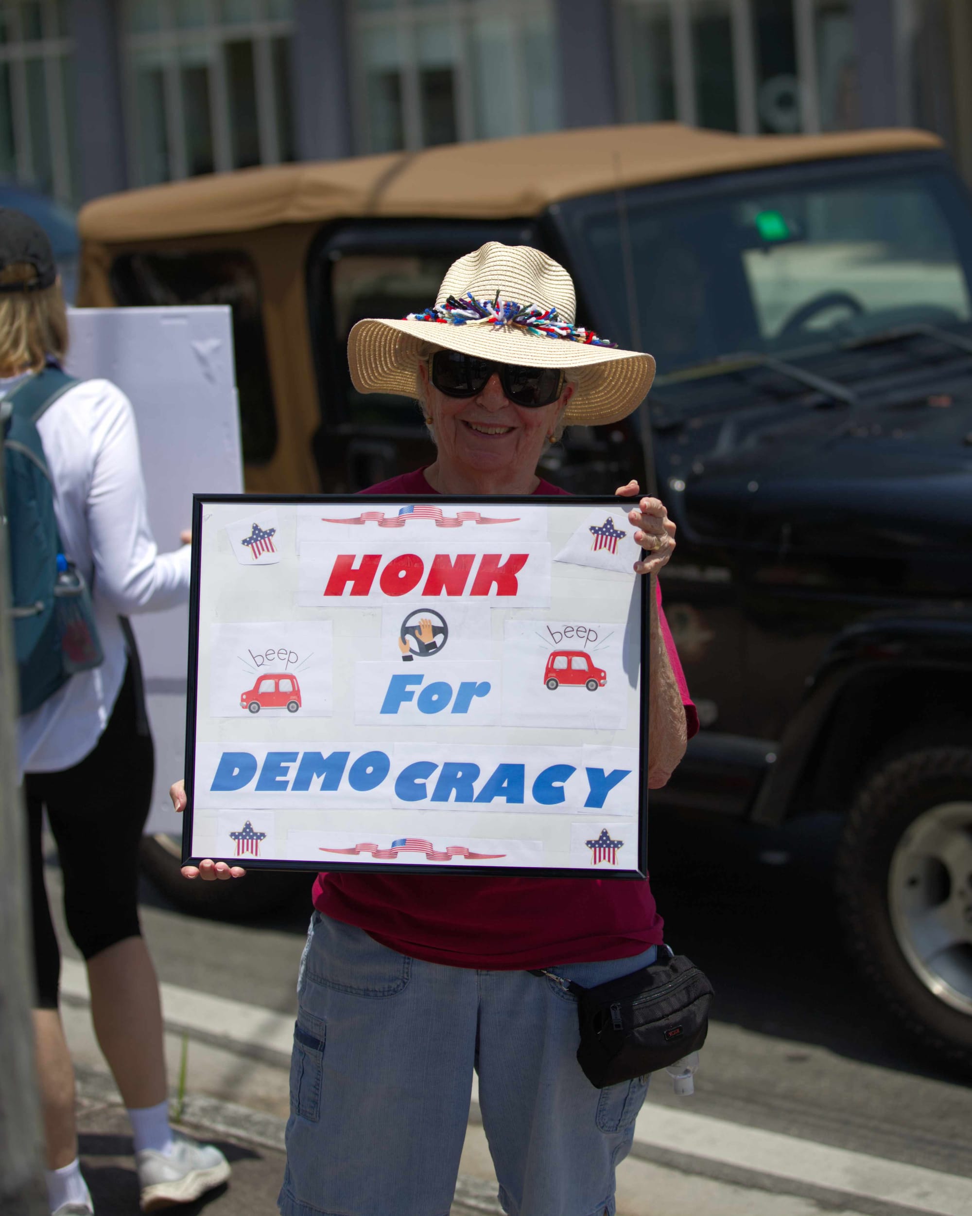 Close to 1 PM about 20 protesters were at this event. Lots of horn honking.