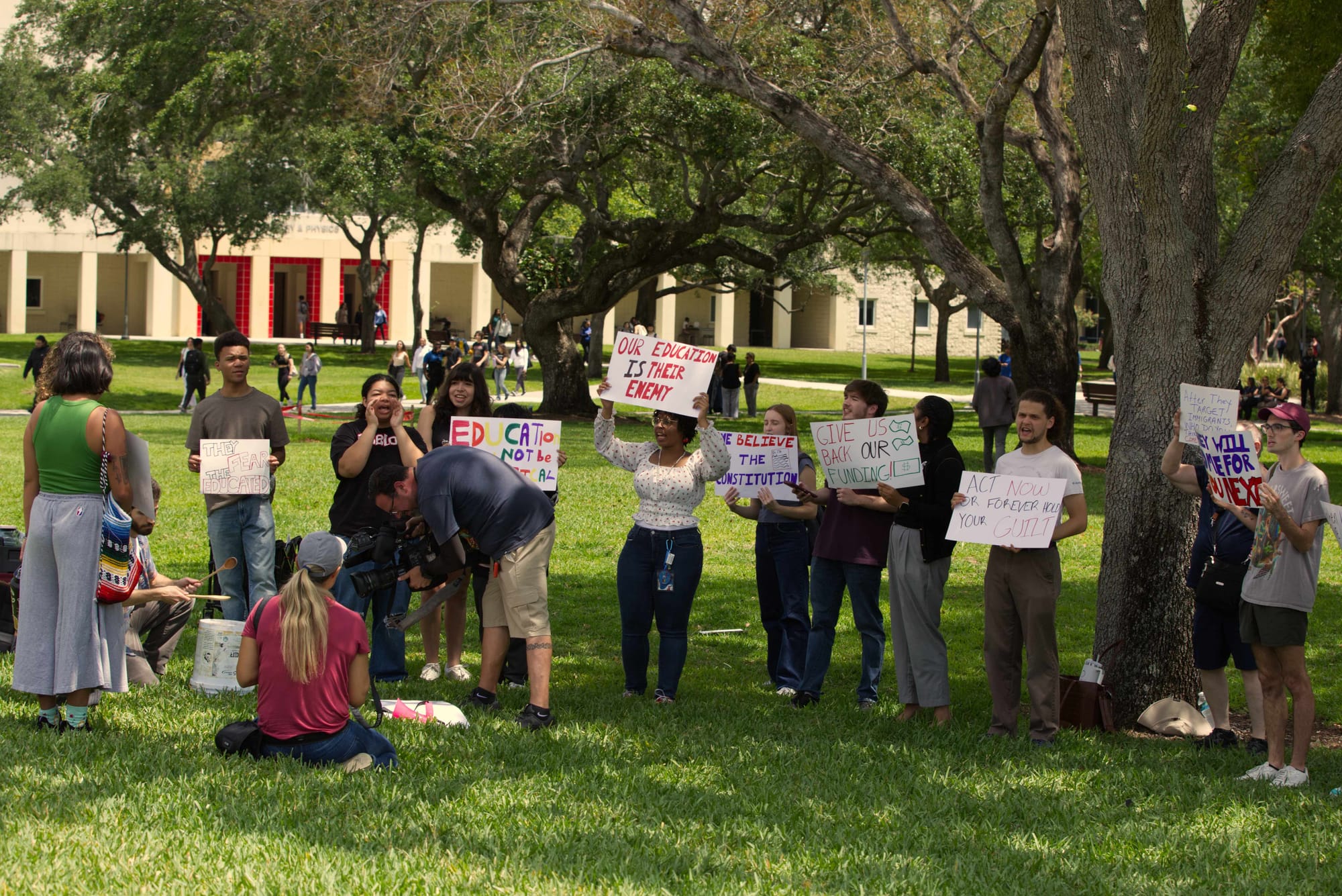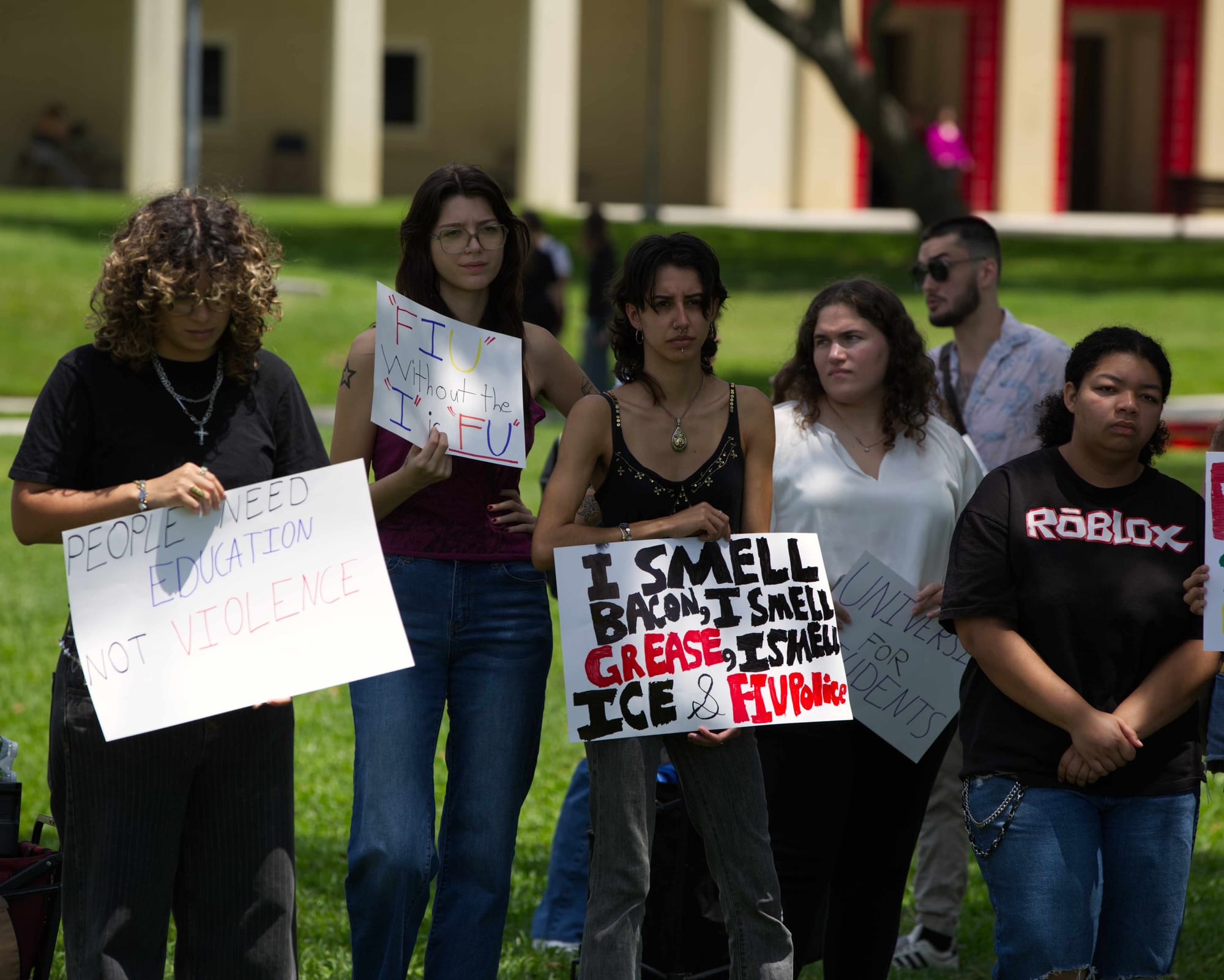 At FIU and in front of Rep Maria Salazar's Calle Ocho office. April 17, 2025