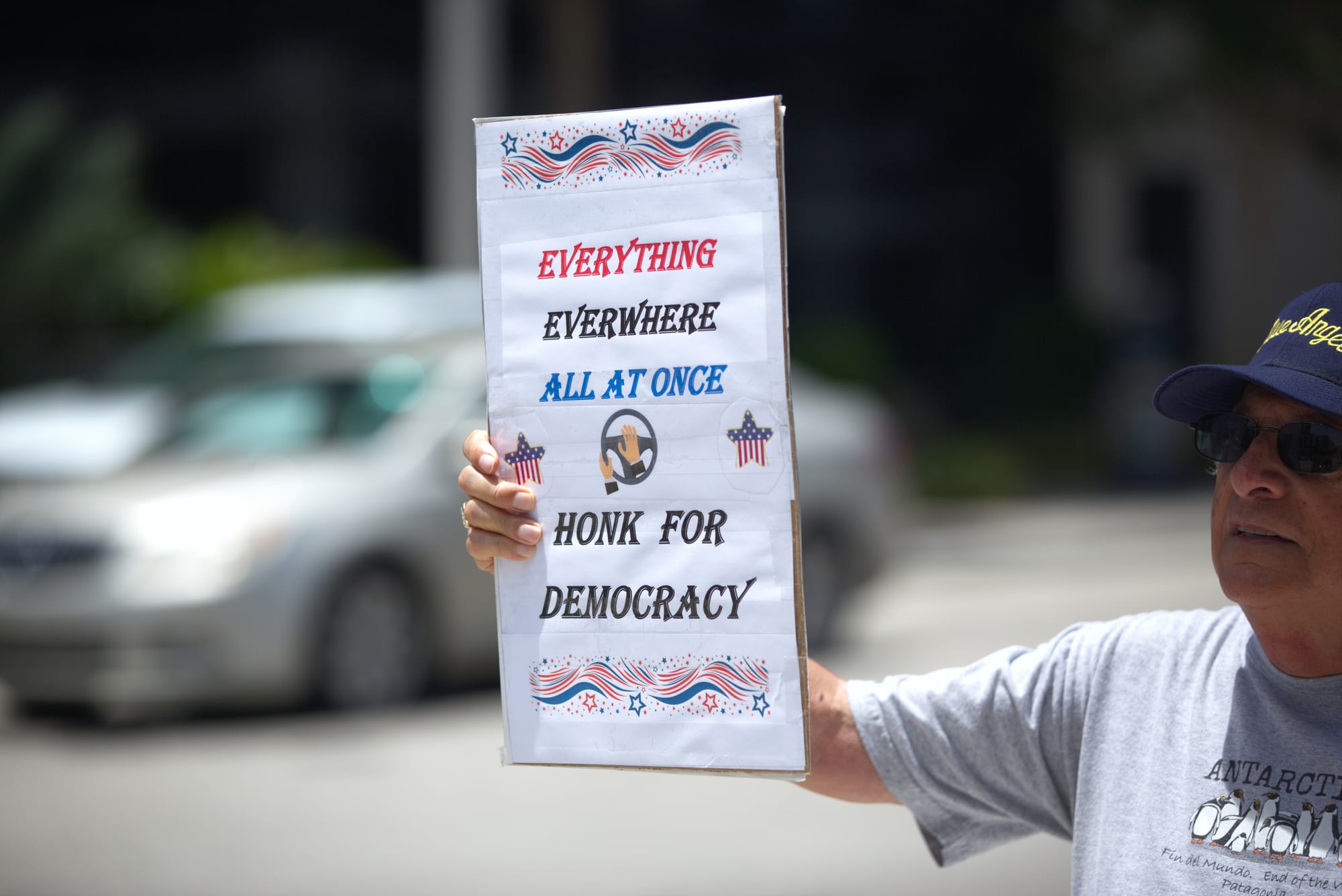 Speakers during the Riders on the Storm rally in Miami, FL June 8, 2025