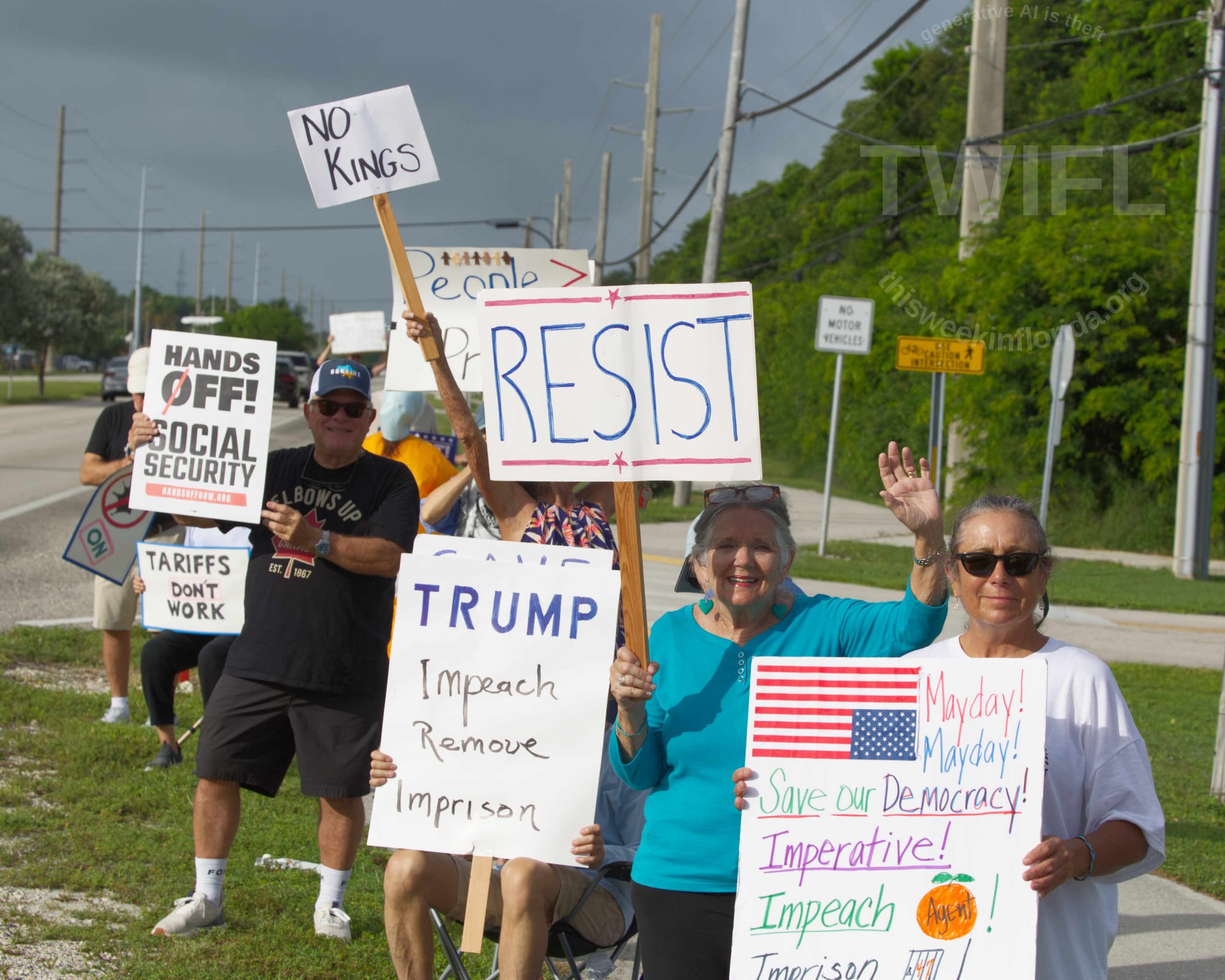 Photos from three different protests on June 14, 2025 in the "No Kings" protests and counter protests. Photos are from Boca Raton and Miami, Florida. Photos credit Philip Cardella 2025.