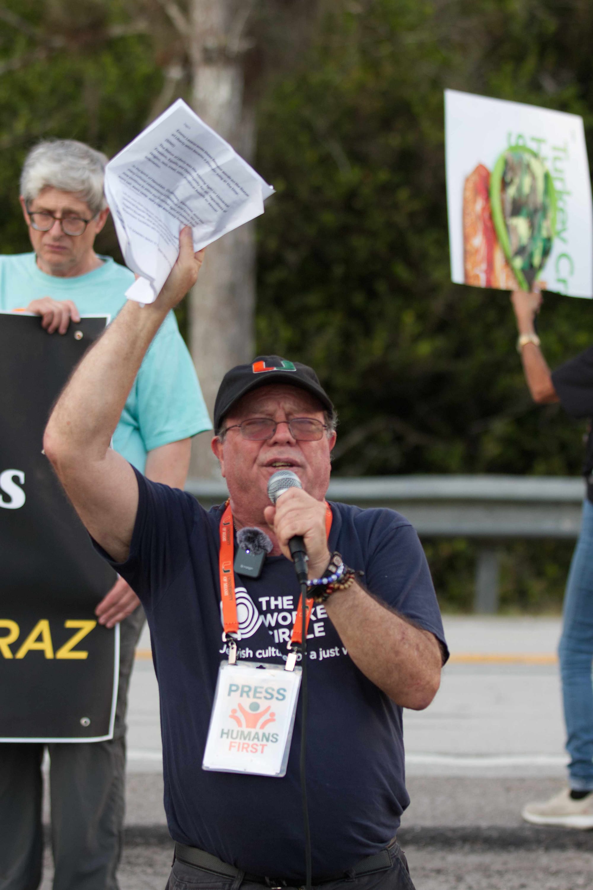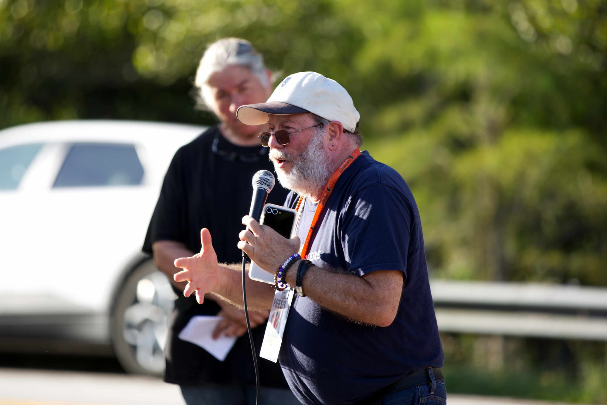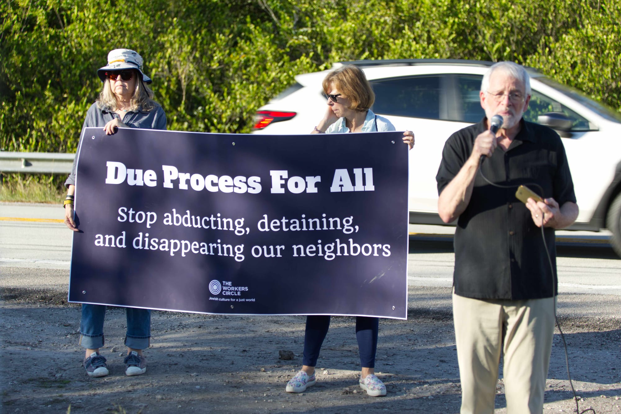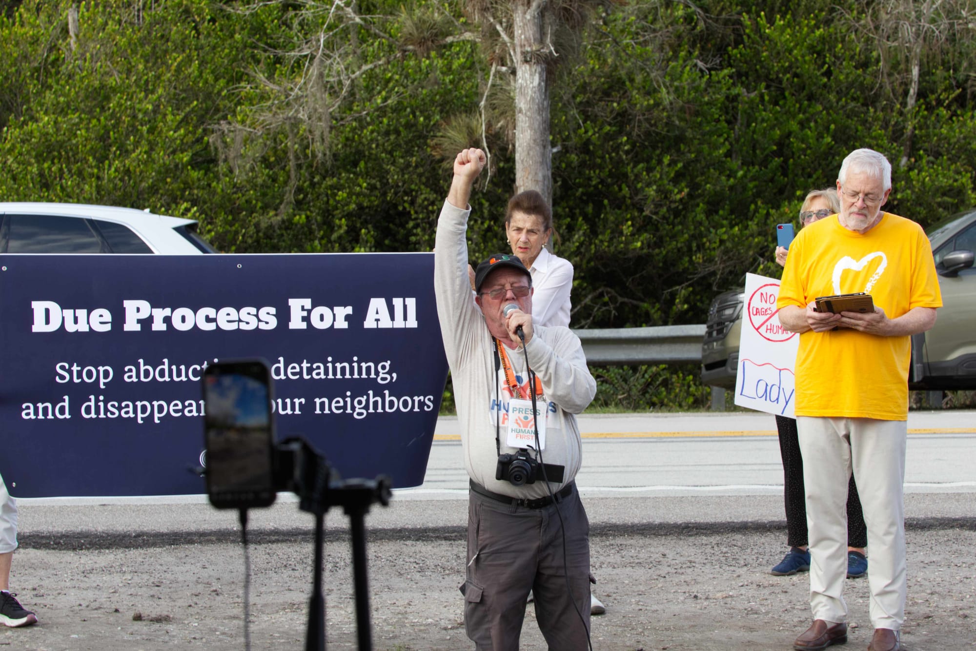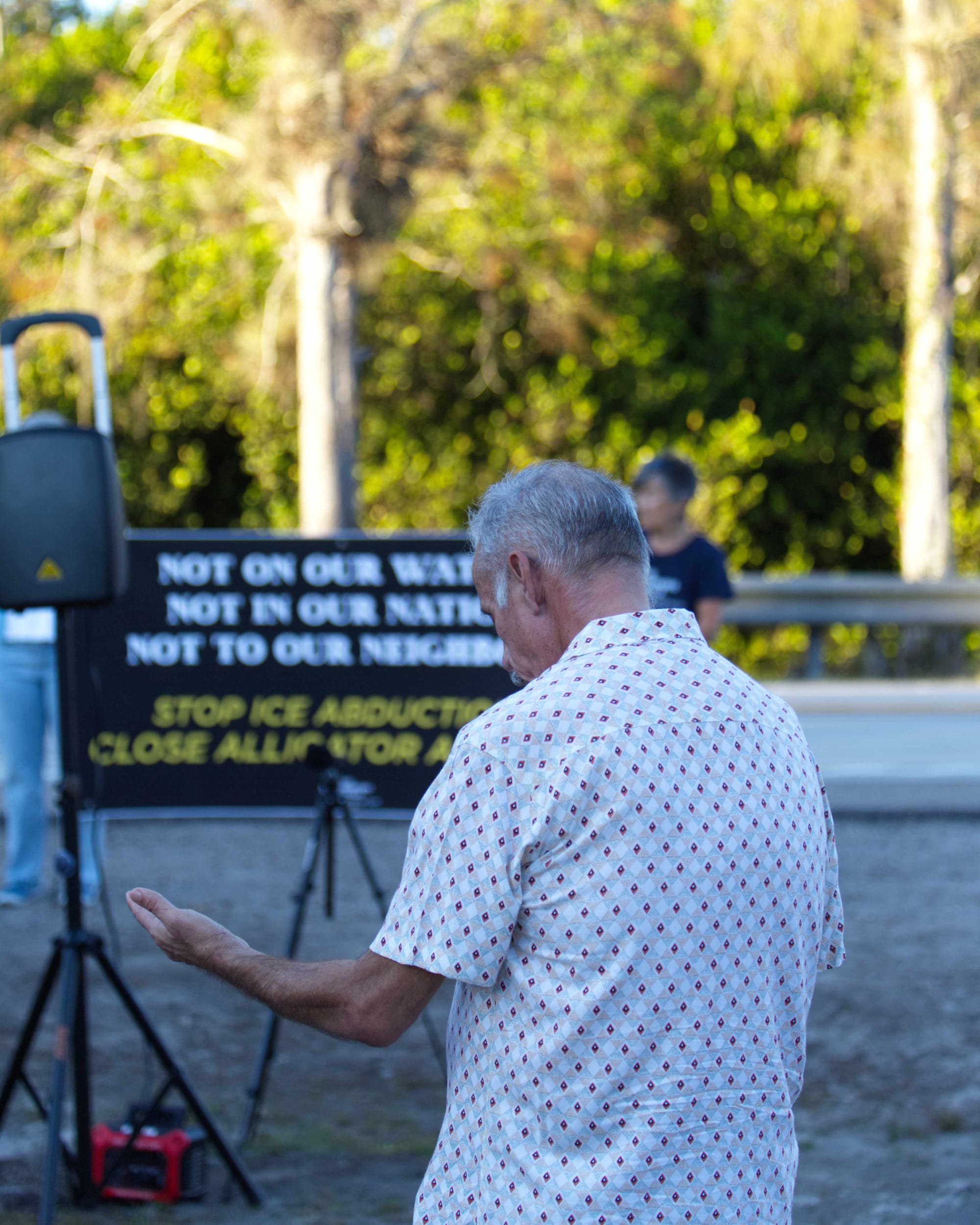 A 50 second video of a man speaking about his experience in Poland during World War II and how it compares to Alligator Alcatraz during the 23rd weekly Sunday prayer vigil across from the site.