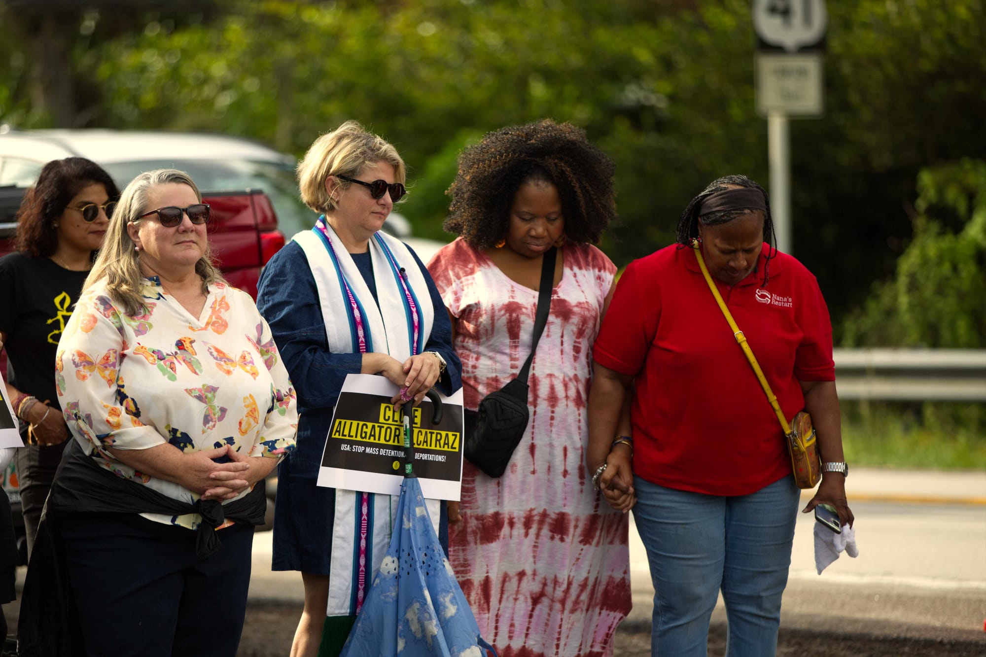 Dozens gathered for prayer in the muddy recess off of US 41 across from the entrance to the South Florida Detention Center (aka A***** A*****, a racist name) after a stormy day in South Florida on Sunday. It was the eighth consecutive prayer vigil at the site where an unknown number of detainees still languish in unbearable conditions.