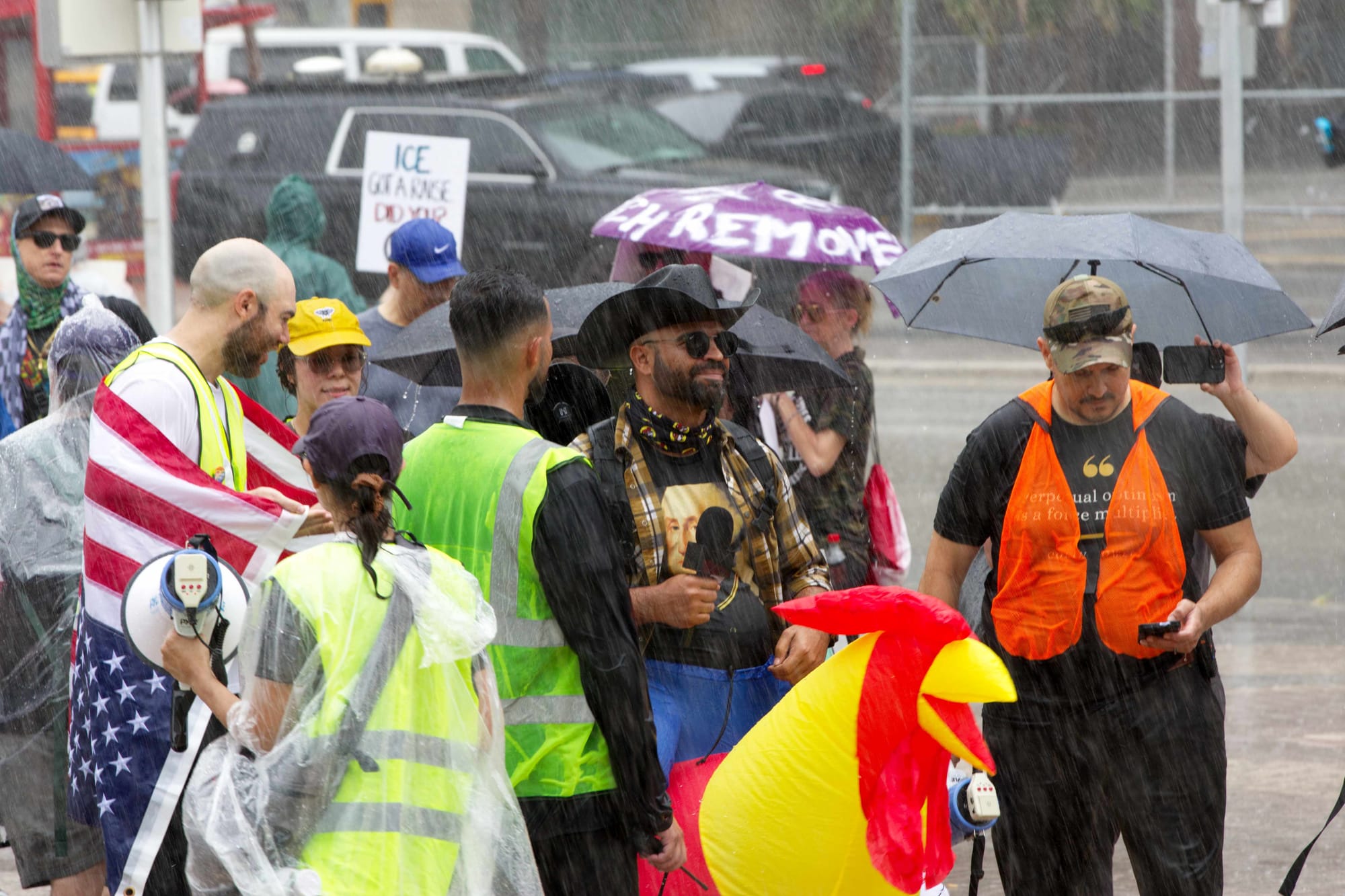 All while the Florida rain, as it does almost every day in the summer, poured on protesters, counter protesters, reporters and tourists alike.