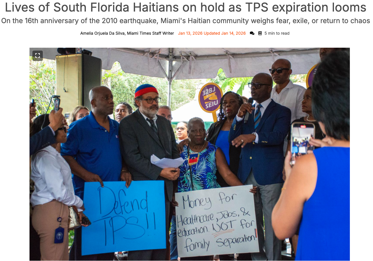 The Miami Herald has run stories on TPS ending, including this one "From protection to peril: what the end of TPS means for Haitians in South Florida, elsewhere."