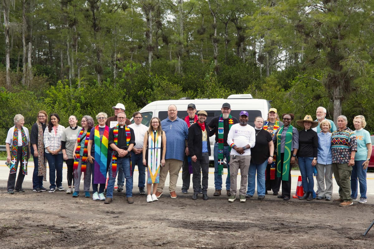 For five Sundays in a row religious groups from all over the state of Florida have convened in the middle of the first road to cross the Florida peninsula, US 41, to pray for the people detained in the tent city across the street from them in the photo above