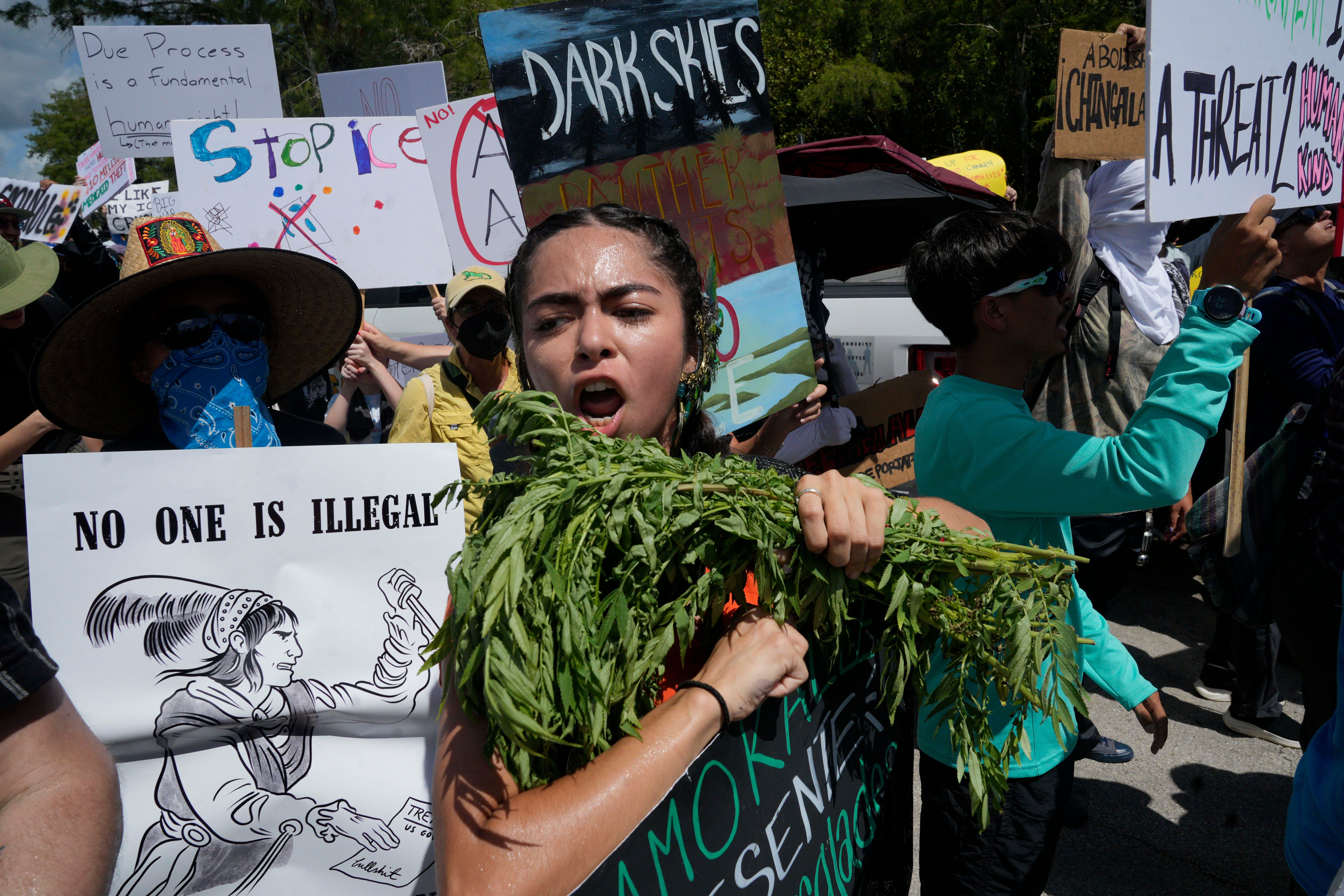 Despite a start time under three hours before the beginning of what Miamians call the Benito Bowl (that's the Super Bowl with Bad Bunny–Benito Ocasio–as the halftime performer) well over 100 people showed up for the 28th weekly Sunday prayer vigil across from the so-called Alligator Alcatraz immigrant detention camp between Miami and Naples, Florida.