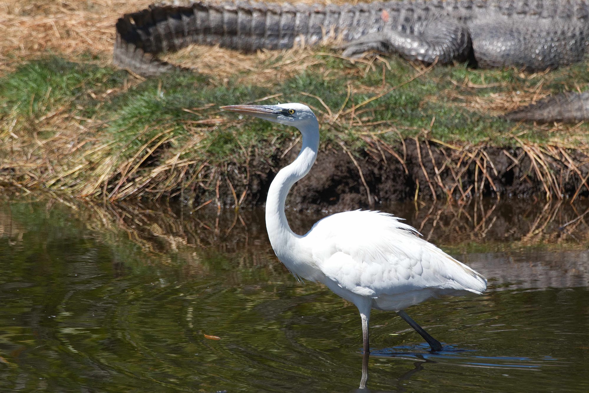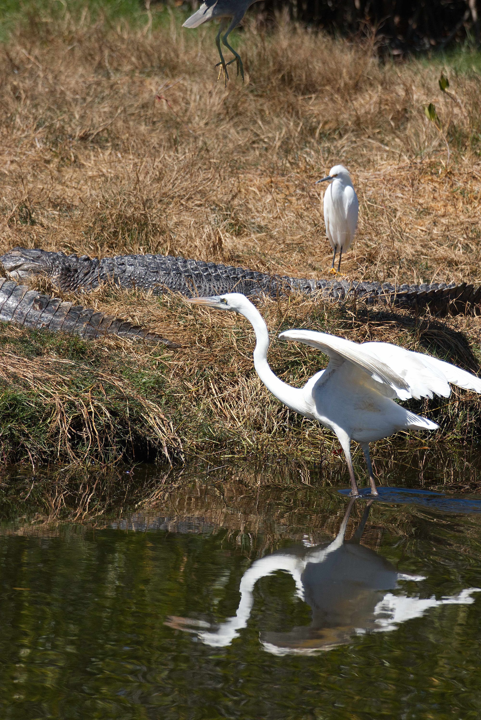 I hadn't heard of the great white heron before. Apparently, they are unique to South Florida and Cuba and there's a debate about whether or not they are the same species of bird as the great blue heron or a different species. Basically, they're a bit of a unicorn and one posed for us for half an hour this week, walking through the marsh, alligators nearby and a variety of birds sharing the water.