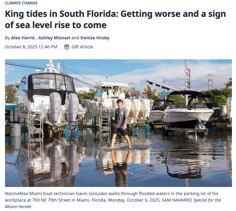 As I'm out of town this week I can't document the king tide flooding myself, but this piece, gift article by clicking on the image, sums it up. Never mind, in Florida we're prohibited (in state laws) from talking about climate change. This is just an instance of FAFO, I guess. Or karma. Or God's wrath. Or something but not climate change!