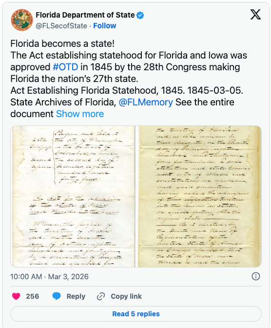 Happy Birthday (State of) Florida. March 3, 1845 Florida was admitted to the United States.