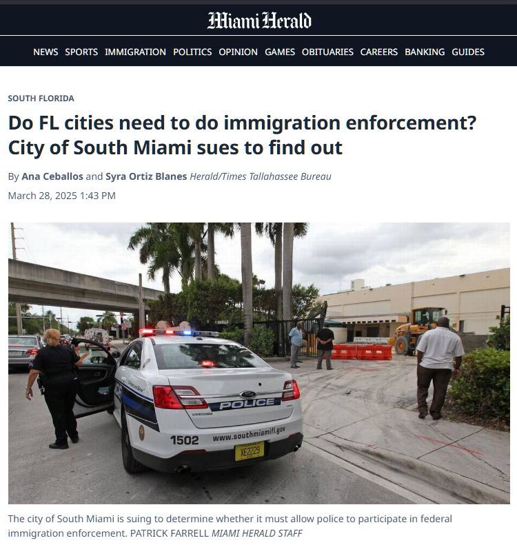 For his city, the 287(g) agreements that the Florida Attorney General has threatened with arrest if they do not sign on to the "voluntary" agreements, make no sense. As he put it, the agreements open city officials all the way up to the mayor's office to litigation (exposure, as lawyers would put it), while bringing back no tangible benefits to the city. This is why his city is asking a court to rule on whether or not they are obligated to join.