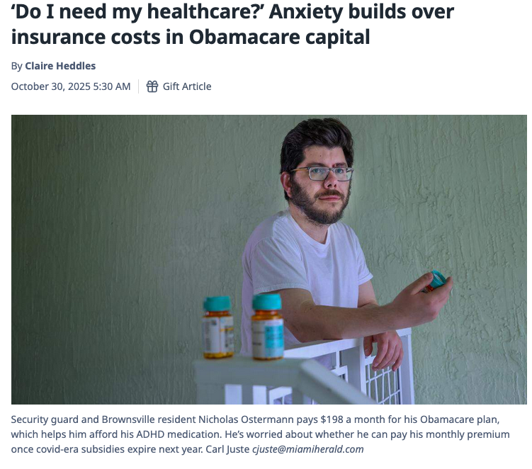 If we can agree that food is a basic human right then its might not be a leap to say that access to decent, affordable health care is a basic human right. Yet, as open enrollment begins, thousands of Miamians and Floridians are struggling with the new normal: skyrocketing health insurance costs. The story above (and here) actually features a member of my church, who I know as Nick.