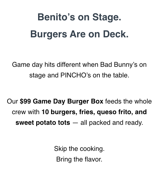 For the "Benito Bowl," as locals referred to the Super Bowl Half Time Show local restaurants didn't miss the opportunity to rally around the flags of America, so to speak.