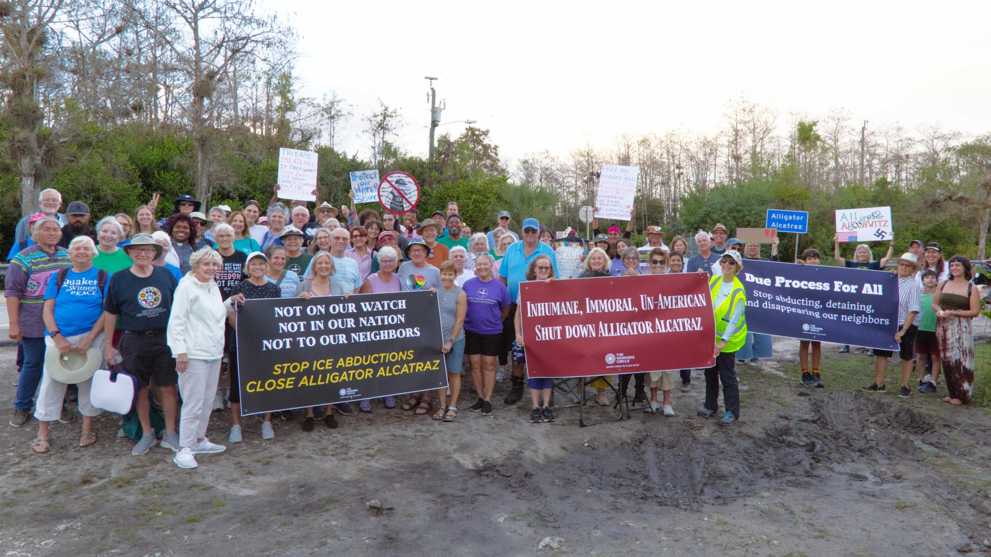 The well done mini documentary (it's about 12 minutes long) includes footage from a recent weekly Sunday prayer vigil across from the South Florida Detention Center, commonly known by its racist state sponsored nickname, Alligator Alcatraz. The video is moving but brief. Well worth your time.