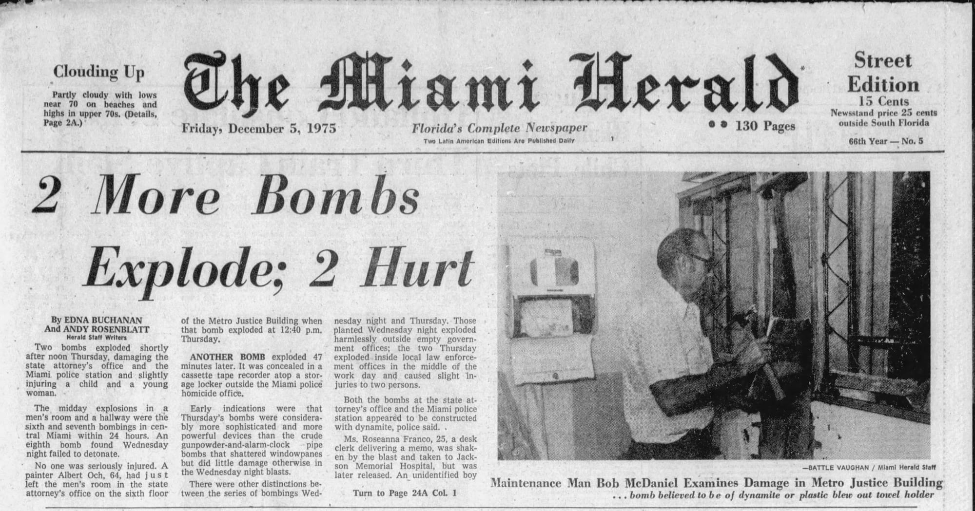 50 years ago this week Miami experienced two more bombs exploding in what had become a pattern that year and an example of why some historians call the 1970s "The decade of nightmares." Ten years ago the Miami New Times ran a story on this so I'll leave it to them to tell about it.