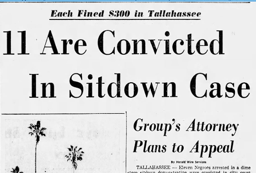 On March 18, 1960, after 11 people were sentenced in a Tallahassee courtroom to a $300 fine or 60 days in jail for disturbing the peace, 8 chose jail time. Sit-ins started in North Carolina but marked the first time that protestors chose jail time over the fine, leading to a shift in the American perception of the Civil Rights Movement and the injustices it sought to change (This Day in Florida History, 47).