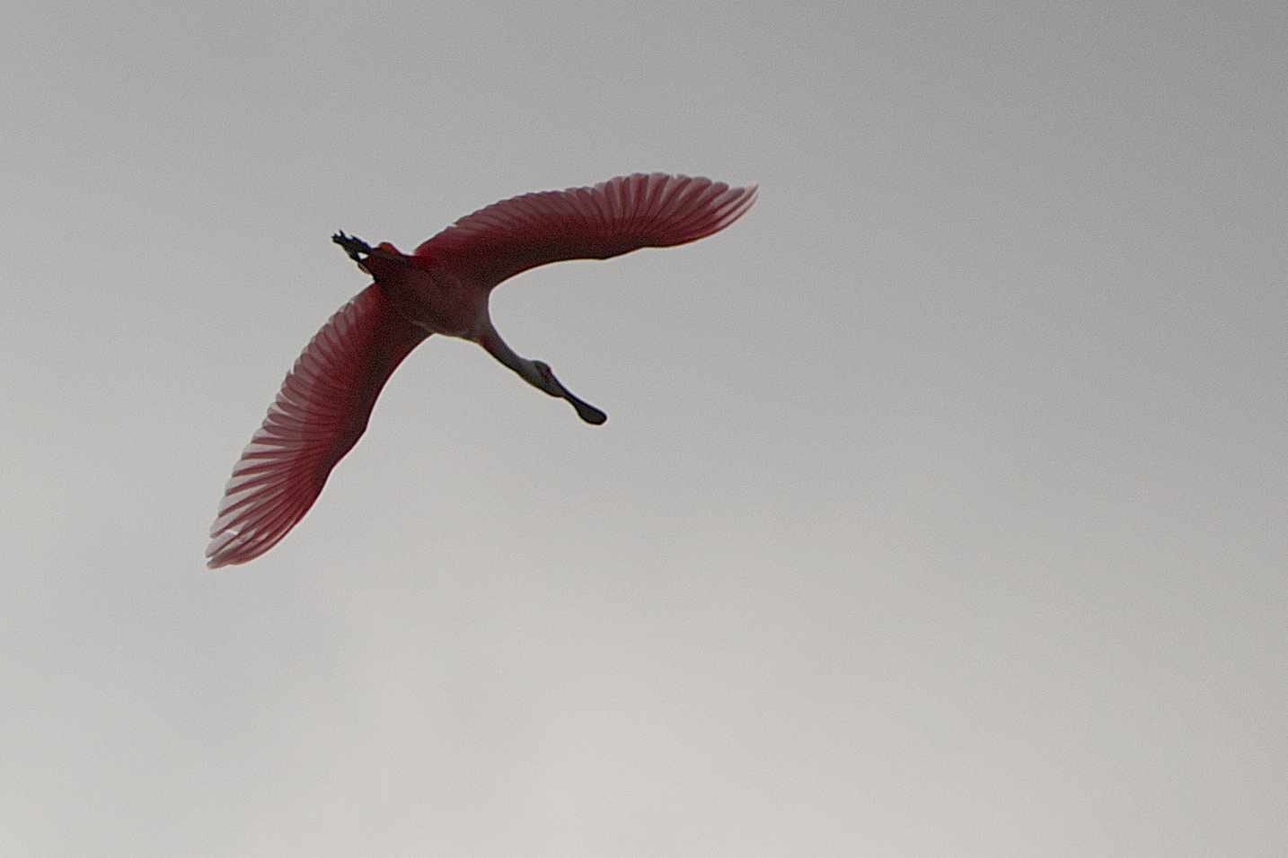 While I was talking to a couple from Boston about their first trip into the Everglades to attend one of the weekly Sunday prayer vigils, one of them pointed up and said, "look a roseatte spoonbill!" and sure enough, there this one was. I snapped off several pictures and despite some lighting challenges they turned out ok, I think.