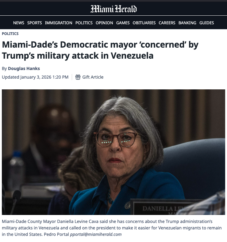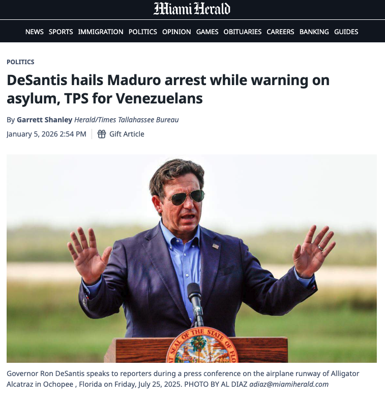 Meanwhile, Governor DeSantis, in the wake of the attack on Venezuela, doubled down on deporting people after detaining them in these state sponsored immigration detention centers, including Venezuelans.